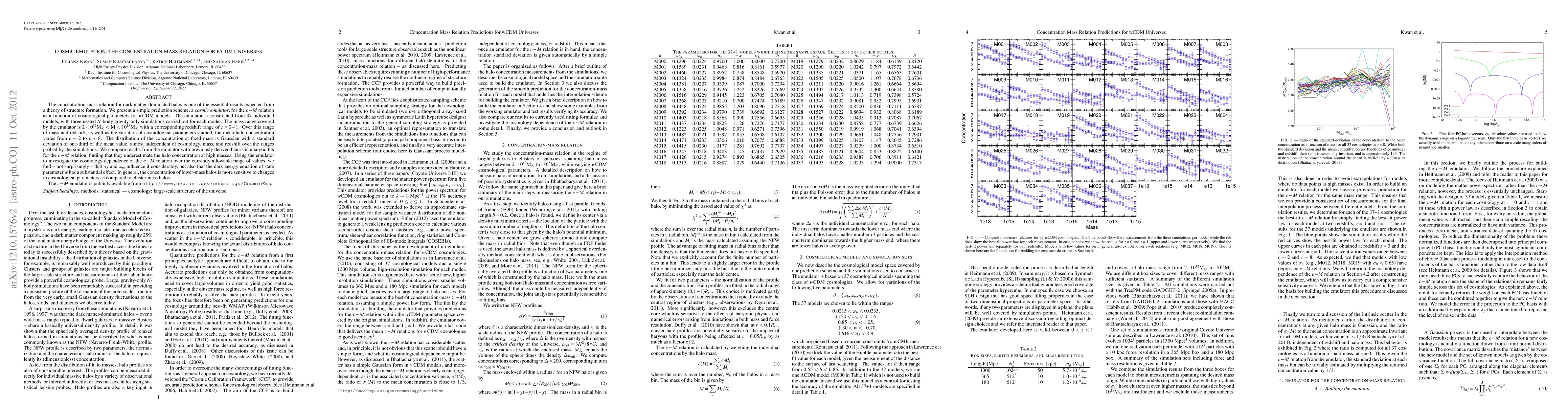 This paper introduces a cosmic emulator to predict the concentration-mass relation for dark matter halos in wCDM models, constructed from 37 N-body simulations. It finds that the emulator's predictions better match observations than previous analytic fits, especially at higher masses, and highlights the significant influence of cosmological parameters on the concentration of halos.