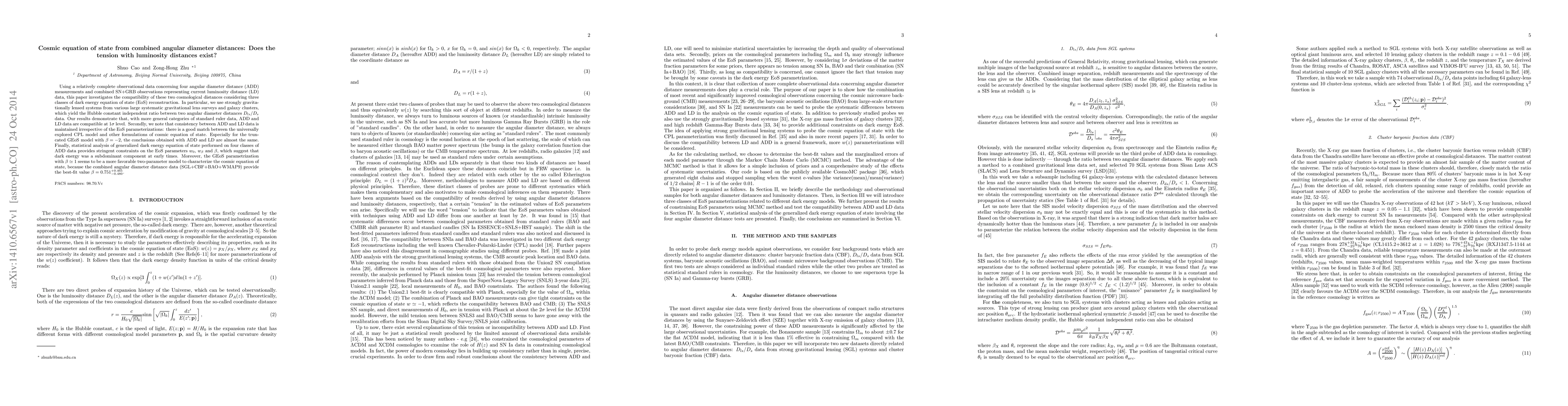 This paper investigates the compatibility between angular diameter distance (ADD) and luminosity distance (LD) data to determine the cosmic equation of state (EoS) of dark energy. The study finds that ADD and LD data are consistent at the $1\sigma$ level, irrespective of the EoS parameterizations, suggesting dark energy was subdominant in the early universe. The generalized EoS model with $\beta\simeq 1$ is favored.