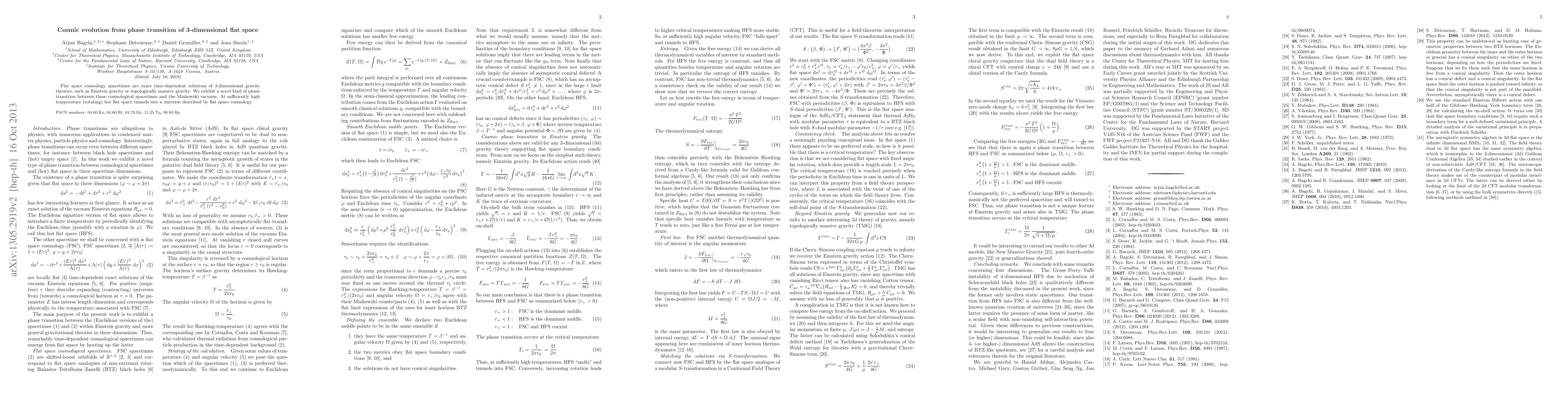 Summary: This paper explores a phase transition in 3-dimensional flat space cosmology, where high-temperature rotating flat space transitions into a universe governed by flat space cosmology, offering a novel perspective on cosmic evolution.