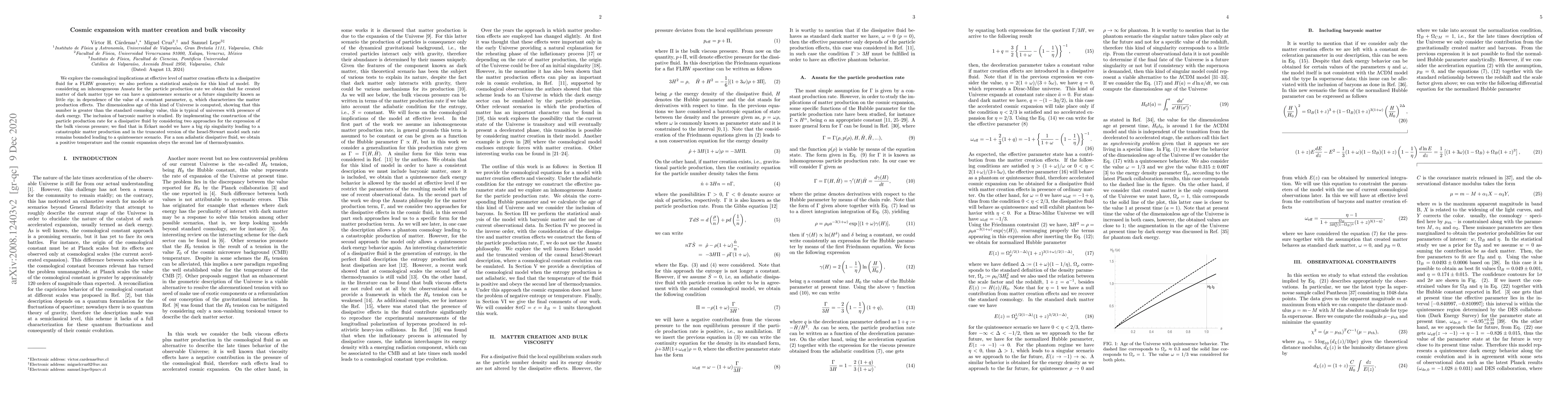 This research paper explores the impact of matter creation on cosmic expansion, finding that it can lead to a quintessence scenario or a singularity depending on a constant parameter, and affects the dimensionless age of the universe.
