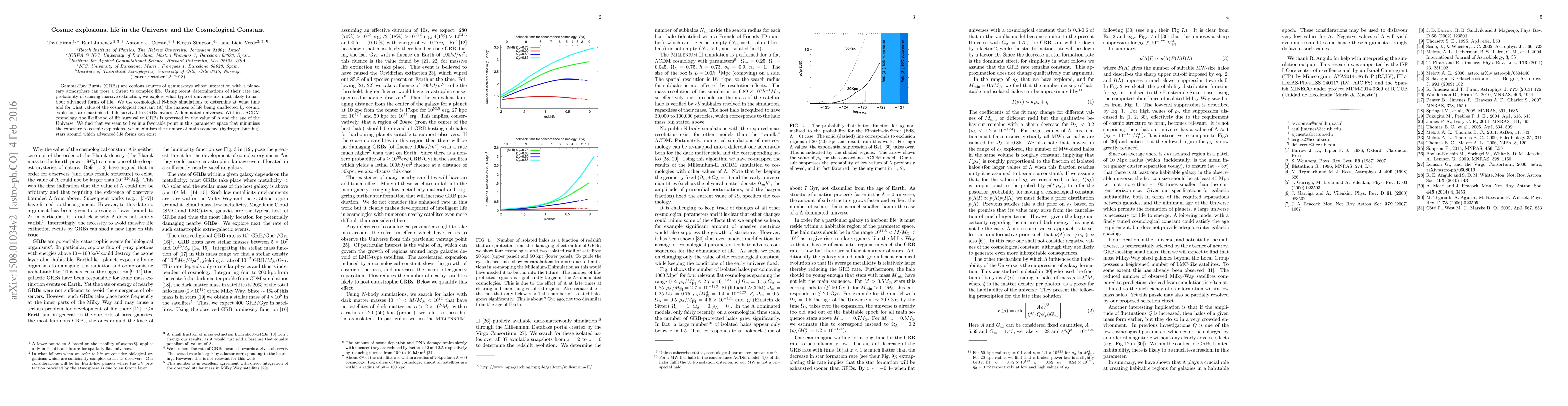 Galactic Gamma-Ray Bursts (GRBs) are copious sources of gamma-rays that can pose a threat to complex life. Using recent determinations of their rate and the probability of GRBs causing massive extinction, we explore what type of universes are most likely to harbour advanced forms of life. For this purpose we use cosmological N-body simulations to determine at what time and for what value of the cosmological constant ($\Lambda$) the chances of life being unaffected by cosmic explosions are maximised. We find that $\Lambda-$dominated universes favour the survival of life against GRBs. Within a $\Lambda$CDM cosmology, the parameters that govern the likelihood of life survival to GRBs are dictated by the value of $\Lambda$ and the age of the Universe. We find that we seem to live in a favorable point in this parameter phase space which minimises the exposure to cosmic explosions, yet maximises the number of main sequence (hydrogen-burning) stars around which advanced life forms can exist.