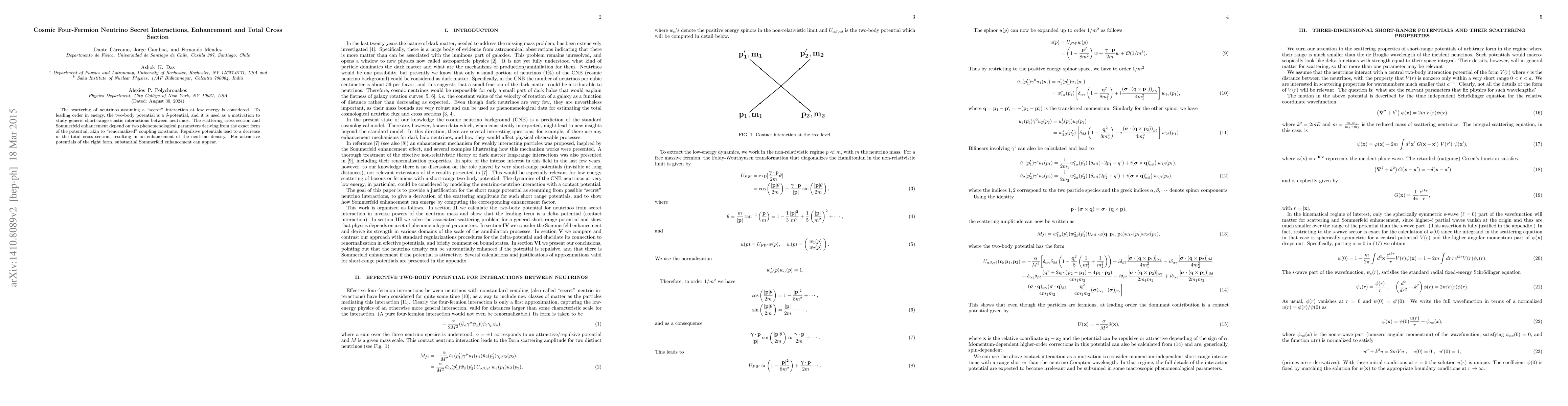 This paper explores neutrino scattering through "secret" low-energy interactions modeled by a $\delta$-potential, examining how short-range elastic interactions affect scattering cross sections and Sommerfeld enhancement. Repulsive potentials reduce total cross sections, while specific attractive potentials can significantly enhance neutrino densities.