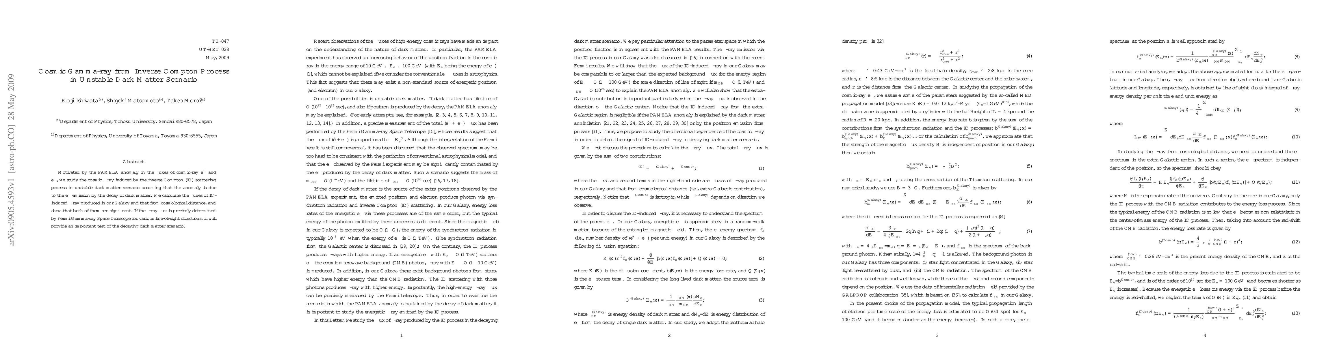 Motivated by the PAMELA anomaly in the fluxes of cosmic-ray electron and positron, we study the cosmic gamma-ray induced by the inverse Compton (IC) scattering process in unstable dark matter scenario assuming that the anomaly is due to the electron and positron emission by the decay of dark matter. We calculate the fluxes of IC-induced gamma-ray produced in our Galaxy and that from cosmological distance, and show that both of them are significant. If the gamma-ray flux is precisely determined by Fermi Gamma-ray Space Telescope for various line-of-sight directions, it will provide an important test of the decaying dark matter scenario.