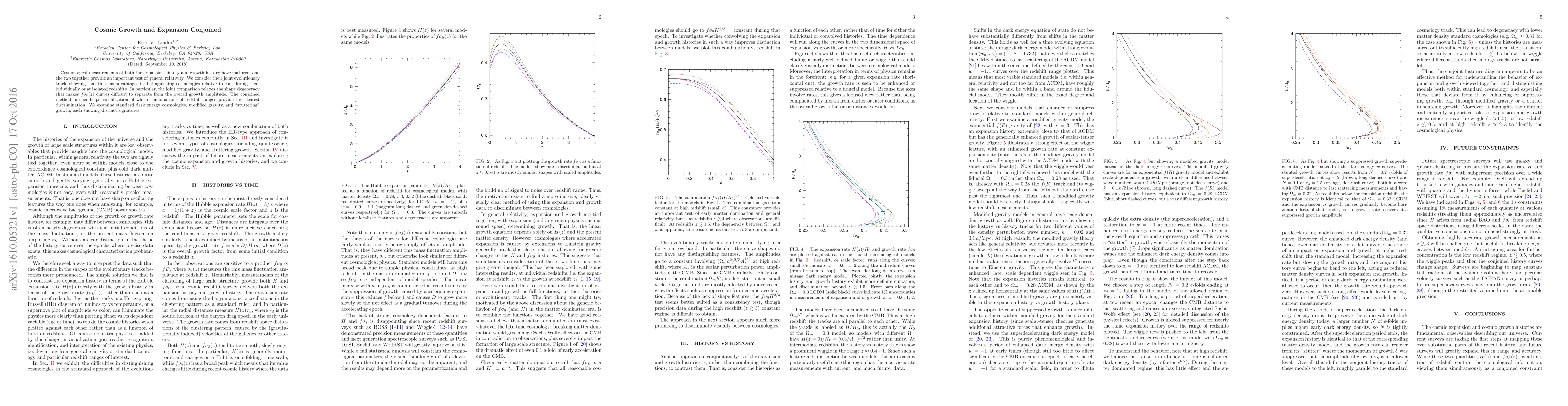 Cosmological measurements of both the expansion history and growth history have matured, and the two together provide an important test of general relativity. We consider their joint evolutionary track, showing that this has advantages in distinguishing cosmologies relative to considering them individually or at isolated redshifts. In particular, the joint comparison relaxes the shape degeneracy that makes $f\sigma_8(z)$ curves difficult to separate from the overall growth amplitude. The conjoined method further helps visualization of which combinations of redshift ranges provide the clearest discrimination. We examine standard dark energy cosmologies, modified gravity, and "stuttering" growth, each showing distinct signatures.