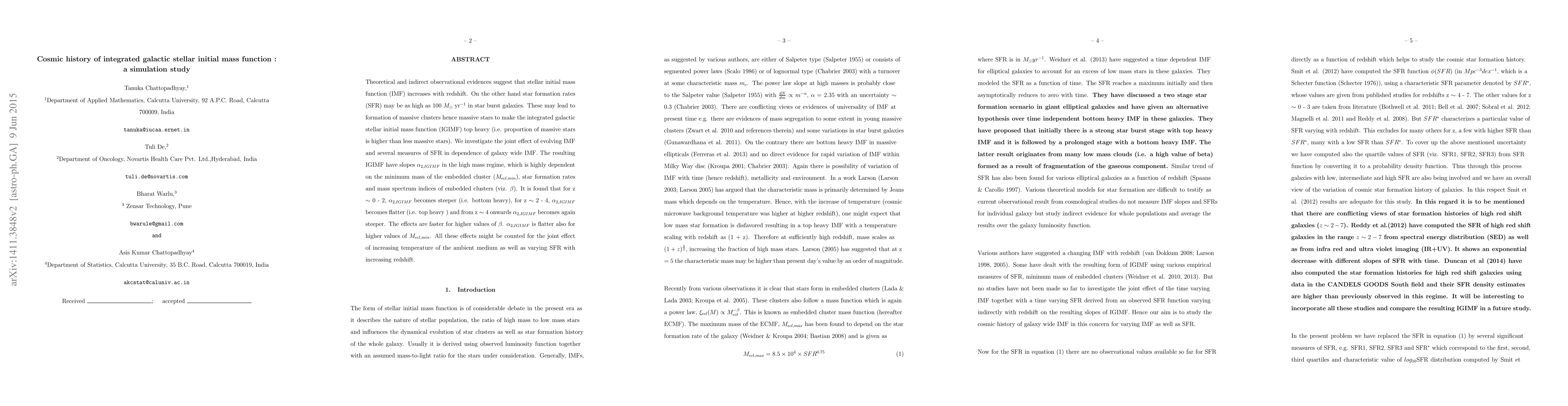 This study investigates the cosmic evolution of the integrated galactic stellar initial mass function (IGIMF) through simulations, finding that it becomes top heavy (higher proportion of massive stars) at redshifts z 2-4 due to high star formation rates in starburst galaxies. The IGIMF slope varies with minimum embedded cluster mass, star formation rates, and mass spectrum indices, showing a complex interplay with redshift.