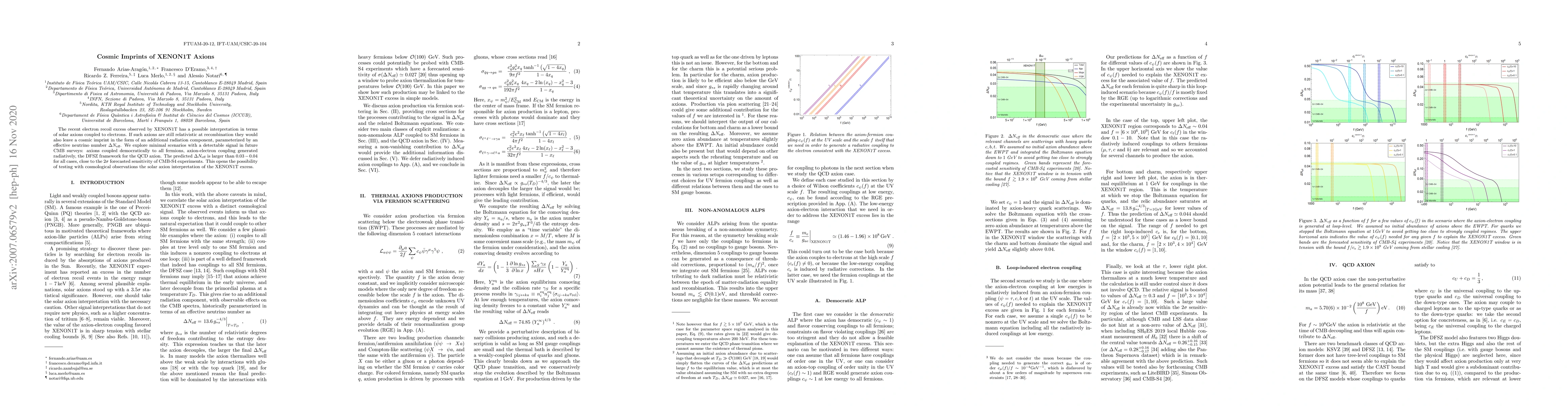 The recent electron recoil excess observed by XENON1T has a possible interpretation in terms of solar axions coupled to electrons. If such axions are still relativistic at recombination they would also leave a cosmic imprint in the form of an additional radiation component, parameterized by an effective neutrino number $\Delta N_\text{eff}$. We explore minimal scenarios with a detectable signal in future CMB surveys: axions coupled democratically to all fermions, axion-electron coupling generated radiatively, the DFSZ framework for the QCD axion. The predicted $\Delta N_\text{eff}$ is larger than $0.03-0.04$ for all cases, close to the $2\sigma$ forecasted sensitivity of CMB-S4 experiments. This opens the possibility of testing with cosmological observations the solar axion interpretation of the XENON1T excess.