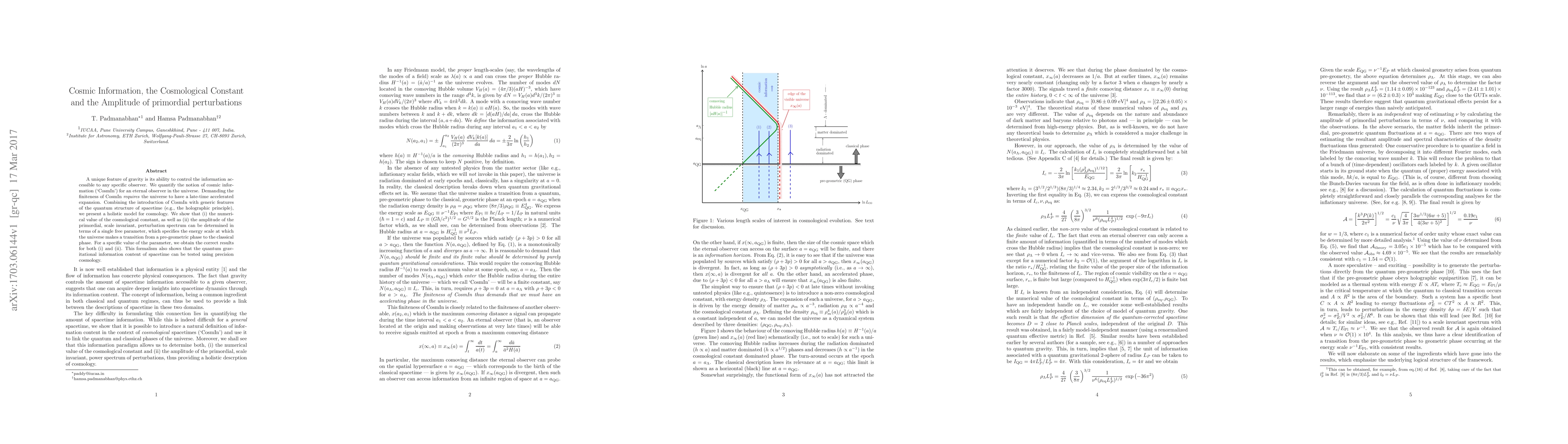 A unique feature of gravity is its ability to control the information accessible to any specific observer. We quantify the notion of cosmic information ('CosmIn') for an eternal observer in the universe. Demanding the finiteness of CosmIn requires the universe to have a late-time accelerated expansion. Combining the introduction of CosmIn with generic features of the quantum structure of spacetime (e.g., the holographic principle), we present a holistic model for cosmology. We show that (i) the numerical value of the cosmological constant, as well as (ii) the amplitude of the primordial, scale invariant, perturbation spectrum can be determined in terms of a single free parameter, which specifies the energy scale at which the universe makes a transition from a pre-geometric phase to the classical phase. For a specific value of the parameter, we obtain the correct results for both (i) and (ii). This formalism also shows that the quantum gravitational information content of spacetime can be tested using precision cosmology.
