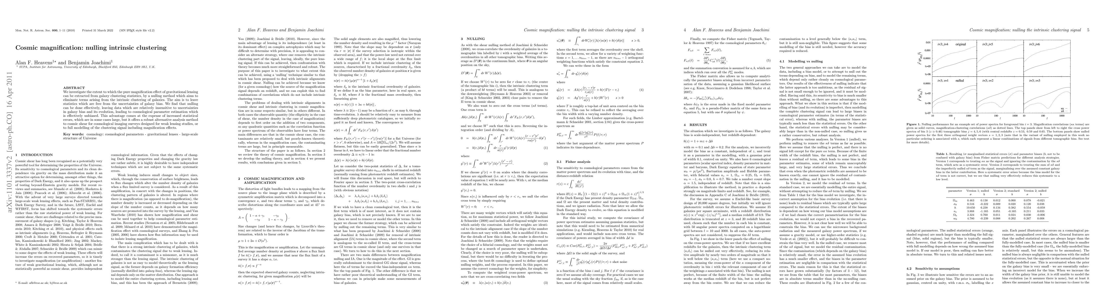 This paper explores a nulling method to isolate the pure magnification effect of gravitational lensing from galaxy clustering statistics, effectively eliminating intrinsic galaxy clustering terms. The method provides unbiased cosmological parameter estimation despite increased statistical errors, offering a robust alternative to cosmic shear analysis for weak lensing studies.