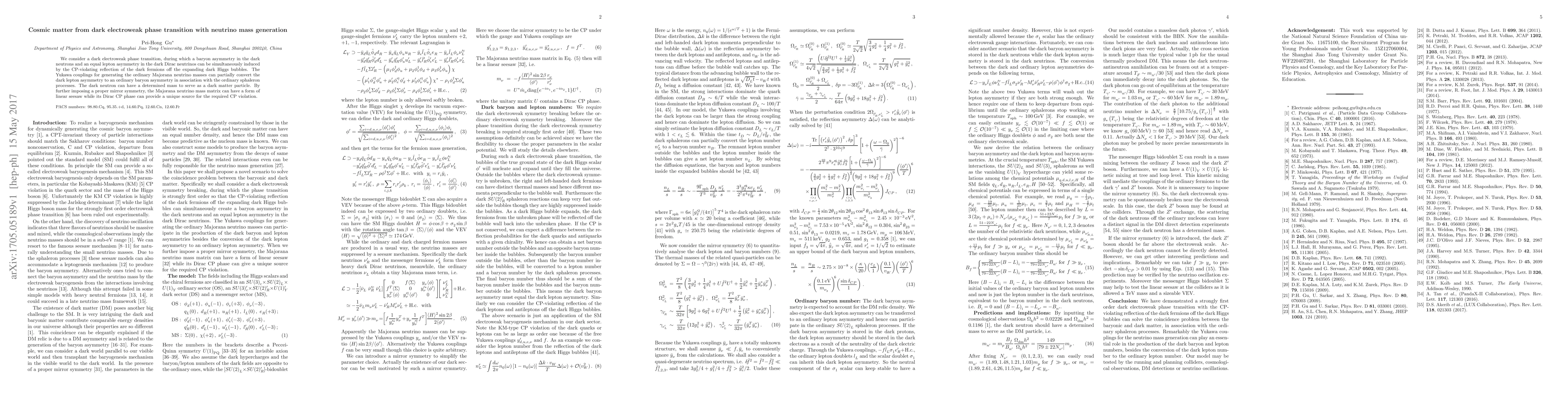 Researchers propose a new method for generating dark matter using a dark electroweak phase transition, which could also produce ordinary neutrino masses.