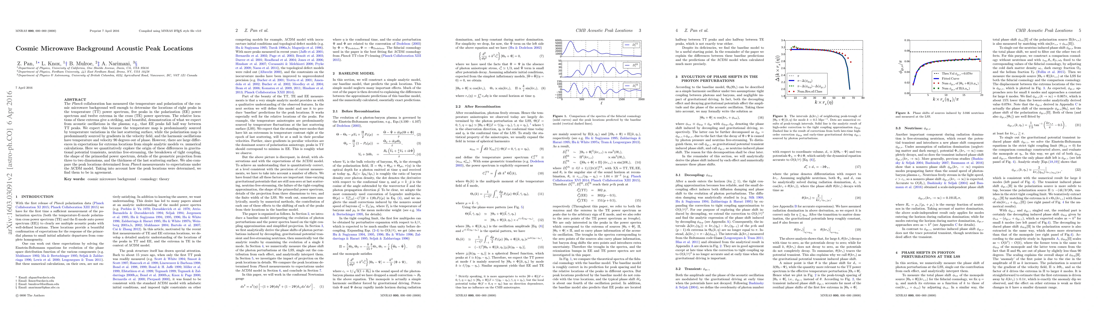The Planck collaboration has measured the temperature and polarization of the cosmic microwave background well enough to determine the locations of eight peaks in the temperature (TT) power spectrum, five peaks in the polarization (EE) power spectrum and twelve extrema in the cross (TE) power spectrum. The relative locations of these extrema give a striking, and beautiful, demonstration of what we expect from acoustic oscillations in the plasma; e.g., that EE peaks fall half way between TT peaks. We expect this because the temperature map is predominantly sourced by temperature variations in the last scattering surface, while the polarization map is predominantly sourced by gradients in the velocity field, and the harmonic oscillations have temperature and velocity 90 degrees out of phase. However, there are large differences in expectations for extrema locations from simple analytic models vs. numerical calculations. Here we quantitatively explore the origin of these differences in gravitational potential transients, neutrino free-streaming, the breakdown of tight coupling, the shape of the primordial power spectrum, details of the geometric projection from three to two dimensions, and the thickness of the last scattering surface. We also compare the peak locations determined from Planck measurements to expectations under the $\Lambda$CDM model. Taking into account how the peak locations were determined, we find them to be in agreement.