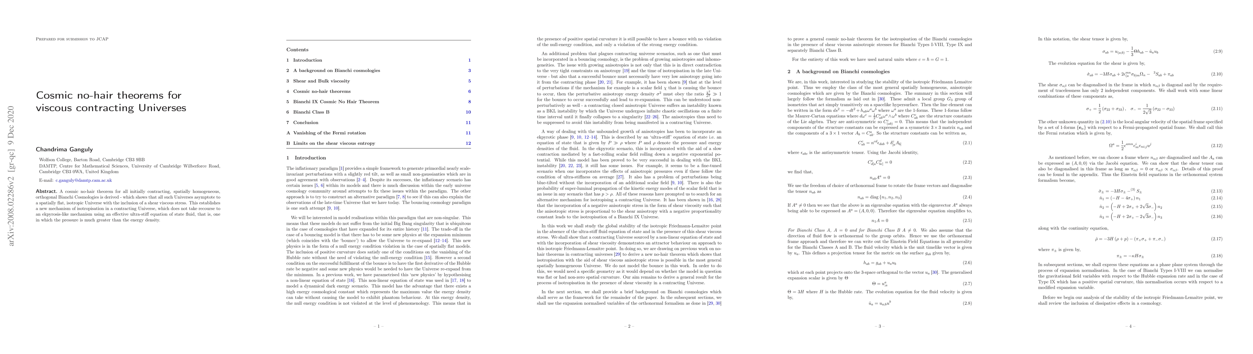 A cosmic no-hair theorem for all initially contracting, spatially homogeneous, orthogonal Bianchi Cosmologies is derived - which shows that all such Universes asymptote to a spatially flat, isotropic Universe with the inclusion of a shear viscous stress. This establishes a new mechanism of isotropisation in a contracting Universe, which does not take recourse to an ekpyrosis-like mechanism using an effective ultra-stiff equation of state fluid, that is, one in which the pressure is much greater than the energy density.