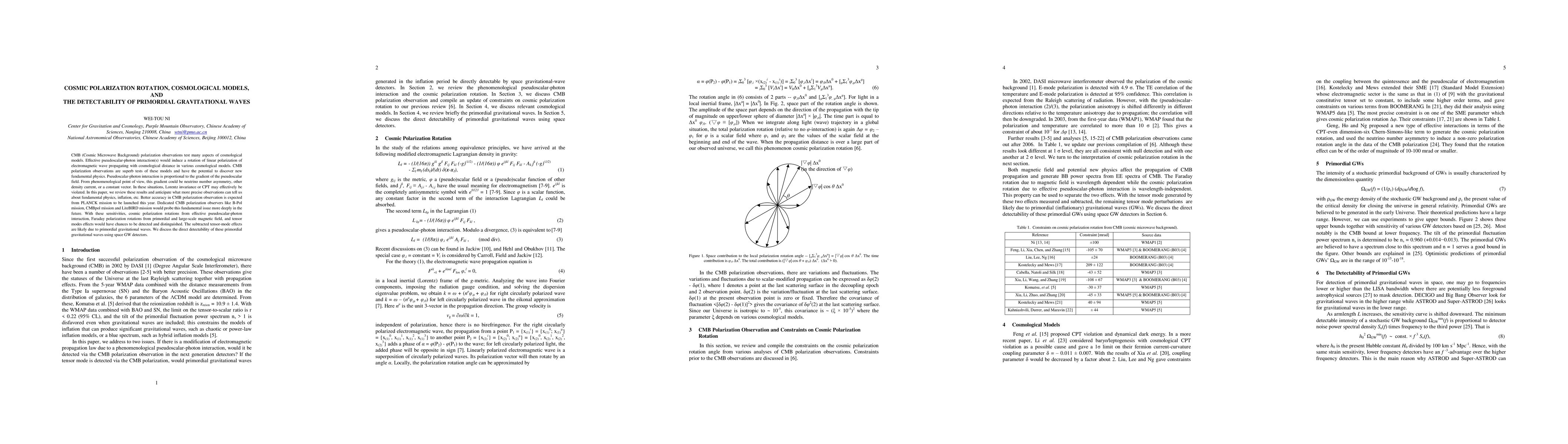 CMB (Cosmic Microwave Background) polarization observations test many aspects of cosmological models. Effective pseudoscalar-photon interaction(s) would induce a rotation of linear polarization of electromagnetic wave propagating with cosmological distance in various cosmological models. CMB polarization observations are superb tests of these models and have the potential to discover new fundamental physics. Pseudoscalar-photon interaction is proportional to the gradient of the pseudoscalar field. From phenomenological point of view, this gradient could be neutrino number asymmetry, other density current, or a constant vector. In these situations, Lorentz invariance or CPT may effectively be violated. In this paper, we review these results and anticipate what more precise observations can tell us about fundamental physics, inflation, etc. Better accuracy in CMB polarization observation is expected from PLANCK mission to be launched this year. Dedicated CMB polarization observers like B-Pol mission, CMBpol mission and LiteBIRD mission would probe this fundamental issue more deeply in the future. With these sensitivities, cosmic polarization rotations from effective pseudoscalar-photon interaction, Faraday polarization rotations from primordial and large-scale magnetic field, and tensor modes effects would have chances to be detected and distinguished. The subtracted tensor-mode effects are likely due to primordial gravitational waves. We discuss the direct detectability of these primordial gravitational waves using space GW detectors.