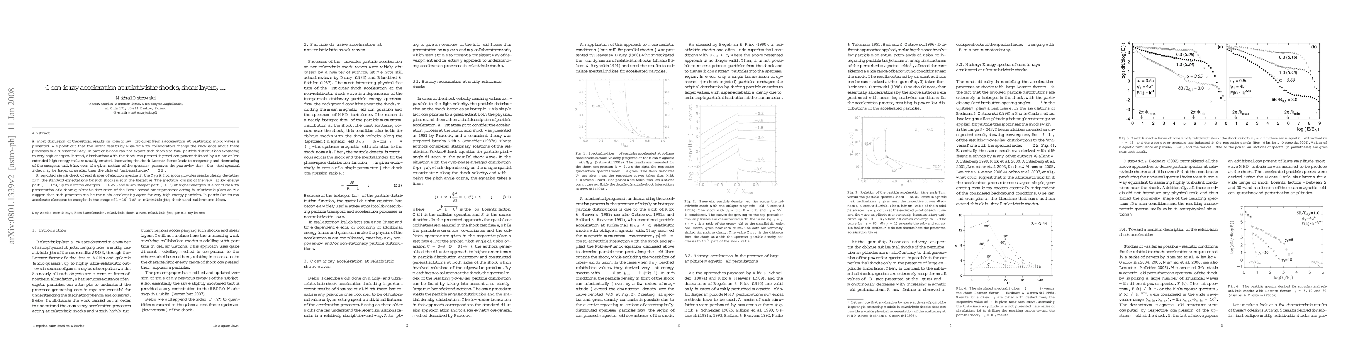 This paper reviews theoretical advancements in cosmic ray acceleration at relativistic shocks, revealing that shocks do not extend particle distributions to very high energies. The observed electron spectra in Cyg A hot spots deviate from standard expectations, suggesting alternative acceleration mechanisms like Fermi second-order processes for high energy cosmic rays.