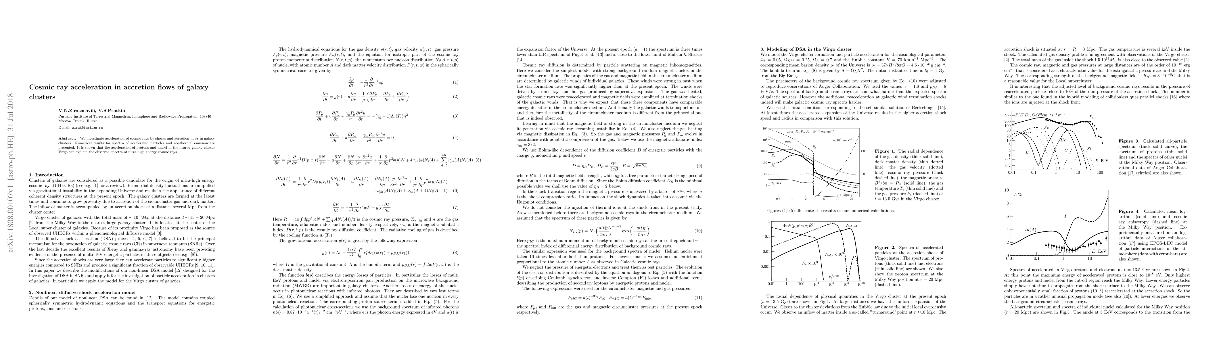 We investigate acceleration of cosmic rays by shocks and accretion flows in galaxy clusters. Numerical results for spectra of accelerated particles and nonthermal emission are presented. It is shown that the acceleration of protons and nuclei in the nearby galaxy cluster Virgo can explain the observed spectra of ultra high energy cosmic rays.