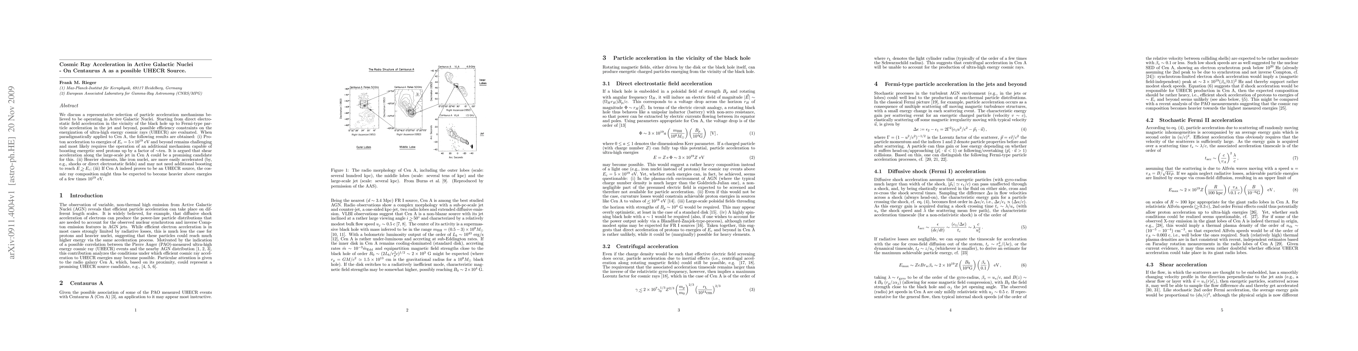 We discuss a representative selection of particle acceleration mechanisms believed to be operating in Active Galactic Nuclei. Starting from direct electrostatic field acceleration in the vicinity of the black hole up to Fermi-type particle acceleration in the jet and beyond, possible efficiency constraints on the energization of ultra-high energy cosmic rays (UHECR) are evaluated. When paradigmatically applied to Cen A, the following results are obtained: (i) Proton acceleration to energies of $E_c = 5\times 10^{19}$ eV and beyond remains challenging and most likely requires the operation of an additional mechanism capable of boosting energetic seed protons up by a factor of $\sim$ten. It is argued that shear acceleration along the large-scale jet in Cen A could be a promising candidate for this. (ii) Heavier elements, like iron nuclei, are more easily accelerated (by, e.g., shocks or direct electrostatic fields) and may not need additional boosting to reach $E \geq E_c$; (iii) If Cen A indeed proves to be an UHECR source, the cosmic ray composition might thus be expected to become heavier above energies of a few times $10^{19}$ eV.