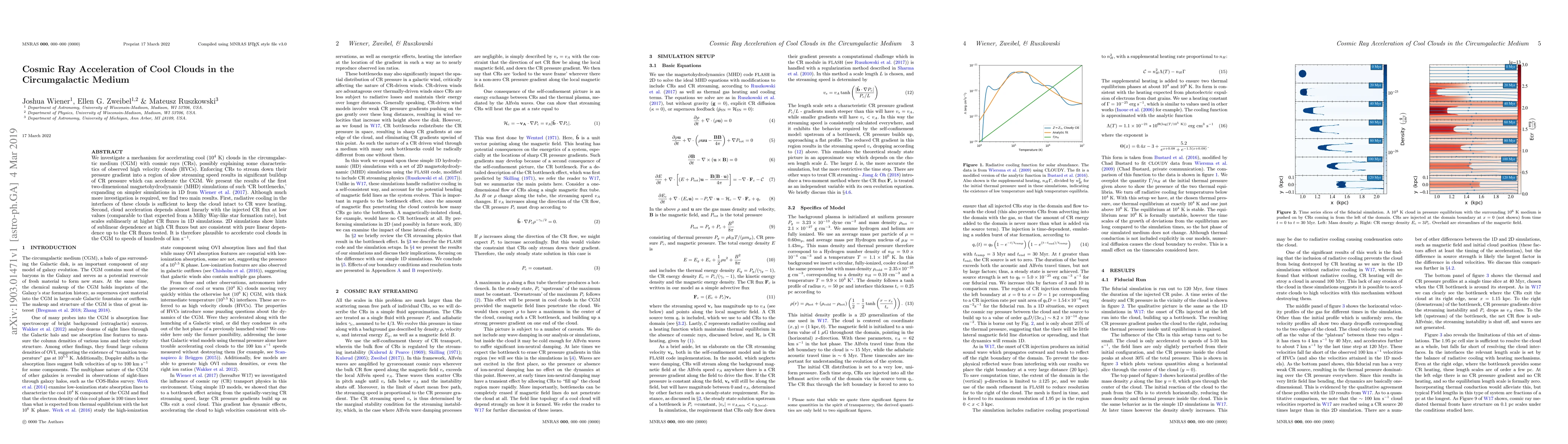 This paper explores cosmic ray acceleration of cool clouds in the circumgalactic medium, suggesting it may explain high velocity clouds. The study finds that cosmic rays can significantly accelerate these clouds, with cloud acceleration showing a linear dependence on the cosmic ray flux at low values, but potentially sublinear at higher fluxes.