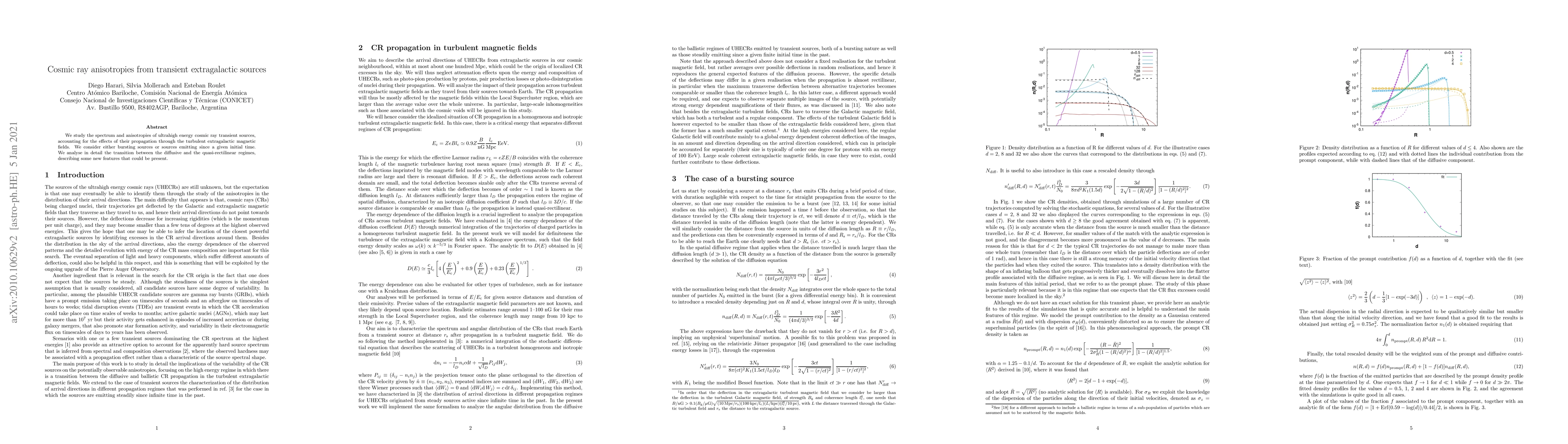 This paper investigates the spectrum and anisotropies of ultrahigh energy cosmic rays from transient extragalactic sources, examining their propagation through turbulent magnetic fields and the transition between diffusive and quasi-rectilinear regimes. It highlights new features that may arise in these processes.