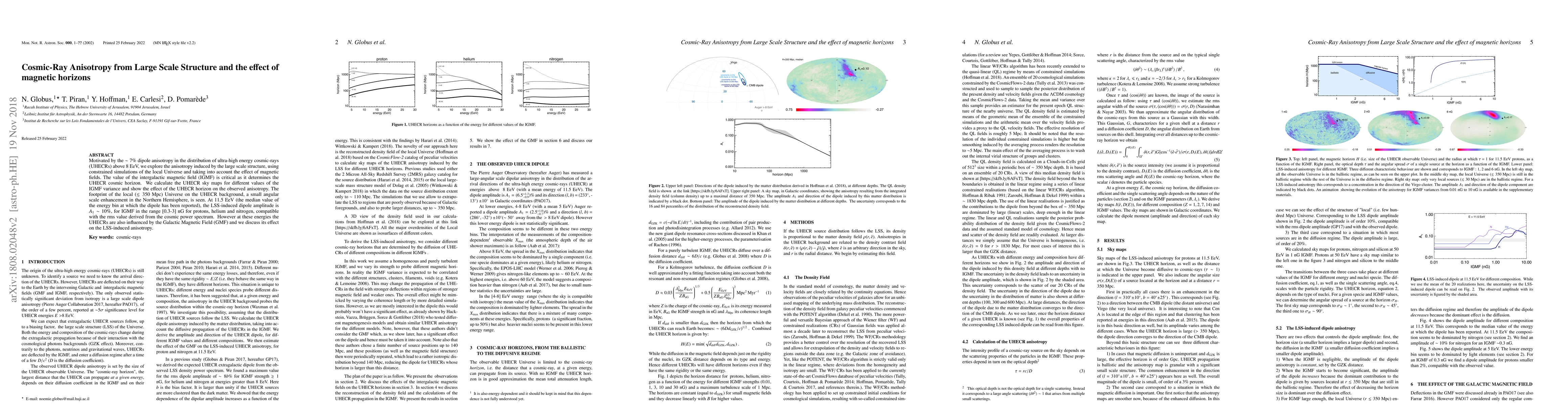 Motivated by the ~7 % dipole anisotropy in the distribution of ultra-high energy cosmic-rays (UHECRs) above 8 EeV, we explore the anisotropy induced by the large scale structure, using constrained simulations of the local Universe and taking into account the effect of magnetic fields. The value of the intergalactic magnetic field (IGMF) is critical as it determines the UHECR cosmic horizon. We calculate the UHECR sky maps for different values of the IGMF variance and show the effect of the UHECR horizon on the observed anisotropy. The footprint of the local ($\lesssim350$ Mpc) Universe on the UHECR background, a small angular scale enhancement in the Northern Hemisphere, is seen. At 11.5 EeV (the median value of the energy bin at which the dipole has been reported), the LSS-induced dipole amplitude is $A_1\sim10\%$, for IGMF in the range [0.3-3] nG for protons, helium and nitrogen, compatible with the rms value derived from the cosmic power spectrum. However at these energies the UHECRs are also influenced by the Galactic Magnetic Field (GMF) and we discuss its effect on the LSS-induced anisotropy.
