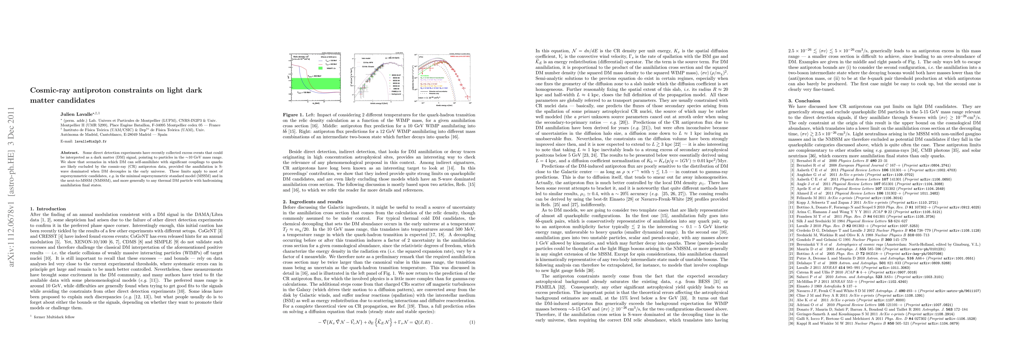 Some direct detection experiments have recently collected excess events that could be interpreted as a dark matter (DM) signal, pointing to particles in the $\sim$10 GeV mass range. We show that scenarios in which DM can self-annihilate with significant couplings to quarks are likely excluded by the cosmic-ray (CR) antiproton data, provided the annihilation is S-wave dominated when DM decouples in the early universe. These limits apply to most of supersymmetric candidates, eg in the minimal supersymmetric standard model (MSSM) and in the next-to-MSSM (NMSSM), and more generally to any thermal DM particle with hadronizing annihilation final states.