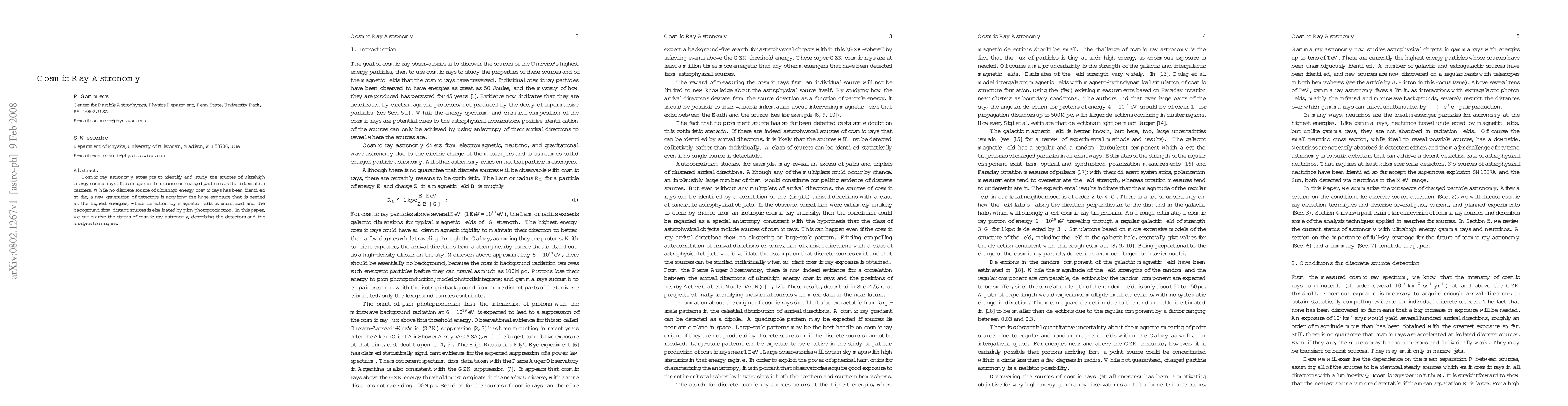 Cosmic ray astronomy attempts to identify and study the sources of ultrahigh energy cosmic rays. It is unique in its reliance on charged particles as the information carriers. While no discrete source of ultrahigh energy cosmic rays has been identified so far, a new generation of detectors is acquiring the huge exposure that is needed at the highest energies, where deflection by magnetic fields is minimized and the background from distant sources is eliminated by pion photoproduction. In this paper, we summarize the status of cosmic ray astronomy, describing the detectors and the analysis techniques.