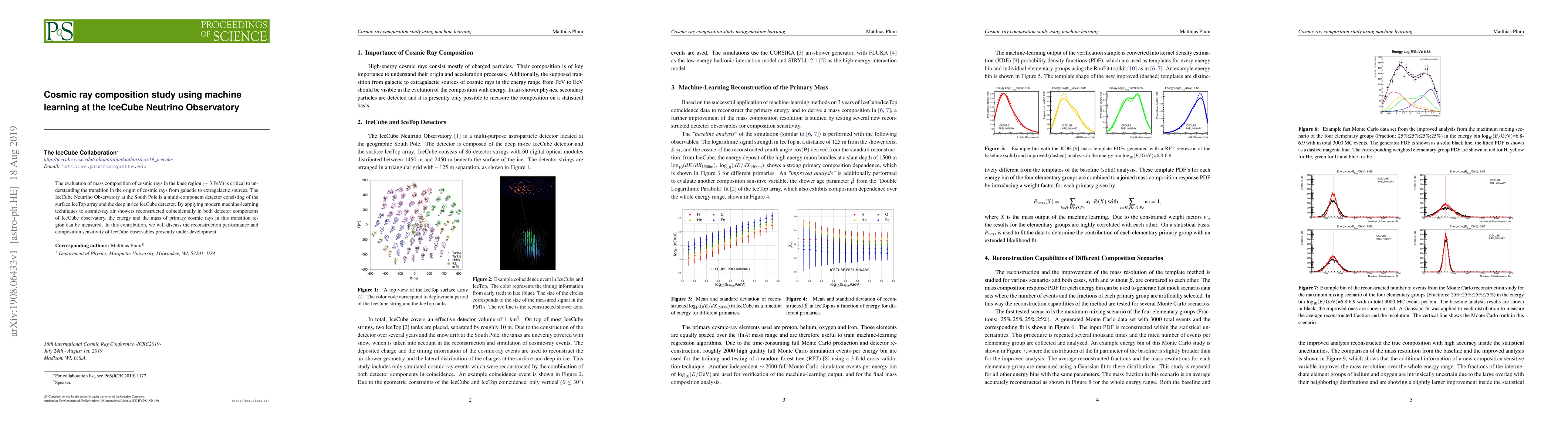 This paper investigates the mass composition of cosmic rays around the knee region using machine learning at the IceCube Neutrino Observatory. It focuses on the transition from galactic to extragalactic sources, utilizing data from both the IceTop array and the deep in-ice IceCube detector to measure primary cosmic ray energy and mass.