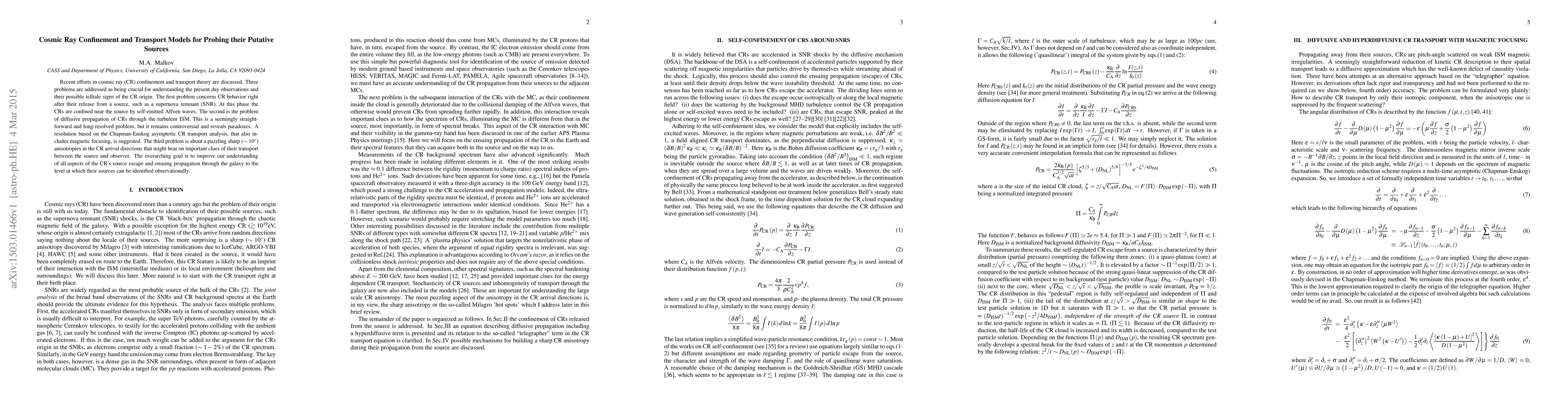 Recent efforts in cosmic ray (CR) confinement and transport theory are discussed. Three problems are addressed as being crucial for understanding the present day observations and their possible telltale signs of the CR origin. The first problem concerns CR behavior right after their release from a source, such as a supernova remnant (SNR). At this phase the CRs are confined near the source by self-emitted Alfven waves. The second is the problem of diffusive propagation of CRs through the turbulent ISM. This is a seemingly straightforward and long-resolved problem, but it remains controversial and reveals paradoxes. A resolution based on the Chapman-Enskog asymptotic CR transport analysis, that also includes magnetic focusing, is suggested. The third problem is about a puzzling sharp ($\sim10^{\circ}$) anisotropies in the CR arrival directions that might bear on important clues of their transport between the source and observer. The overarching goal is to improve our understanding of all aspects of the CR's source escape and ensuing propagation through the galaxy to the level at which their sources can be identified observationally.