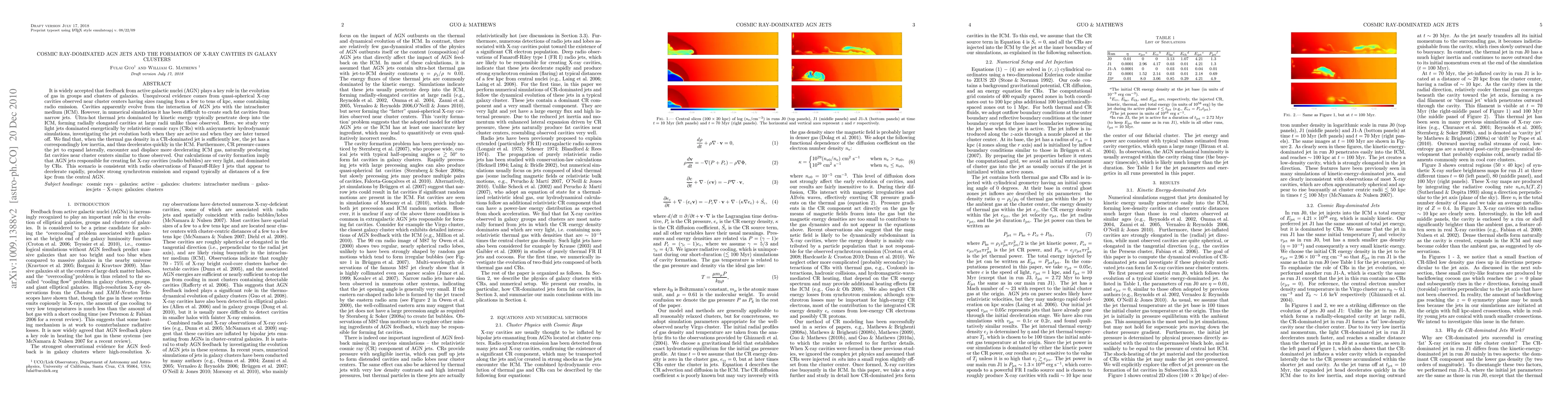 This study investigates the formation of X-ray cavities in galaxy clusters through cosmic ray-dominated AGN jets, finding that such jets, with low thermal gas density and high cosmic ray pressure, naturally produce the observed fat cavities near cluster centers. The results suggest that these cavities are formed by very light jets dominated by relativistic cosmic rays rather than ultra-hot thermal jets.