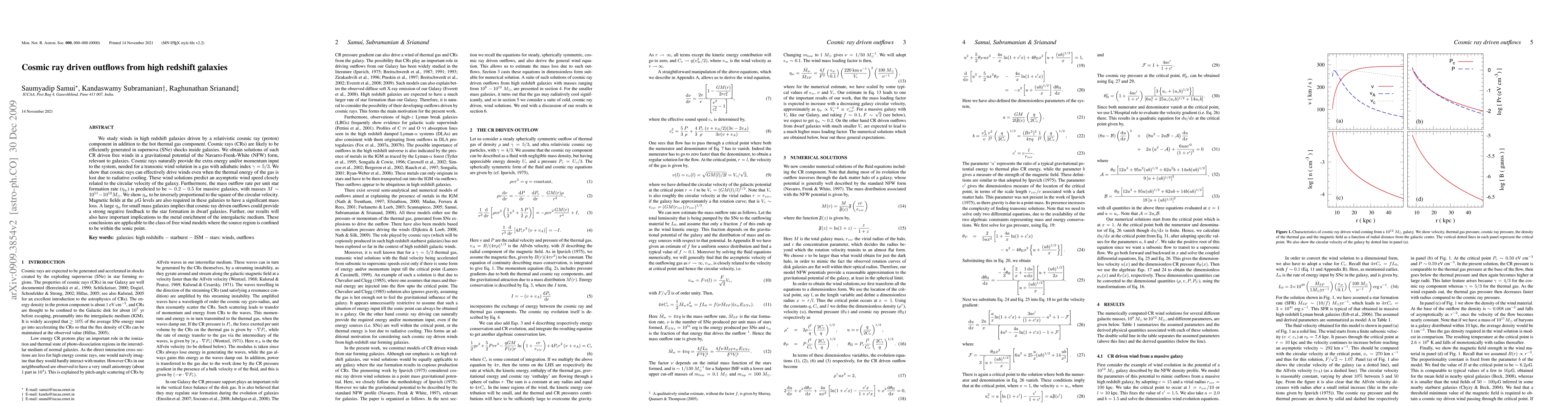 High redshift galaxies can drive outflows with cosmic rays providing the energy and momentum to create transonic winds, which can impact star formation and metal enrichment of the intergalactic medium.