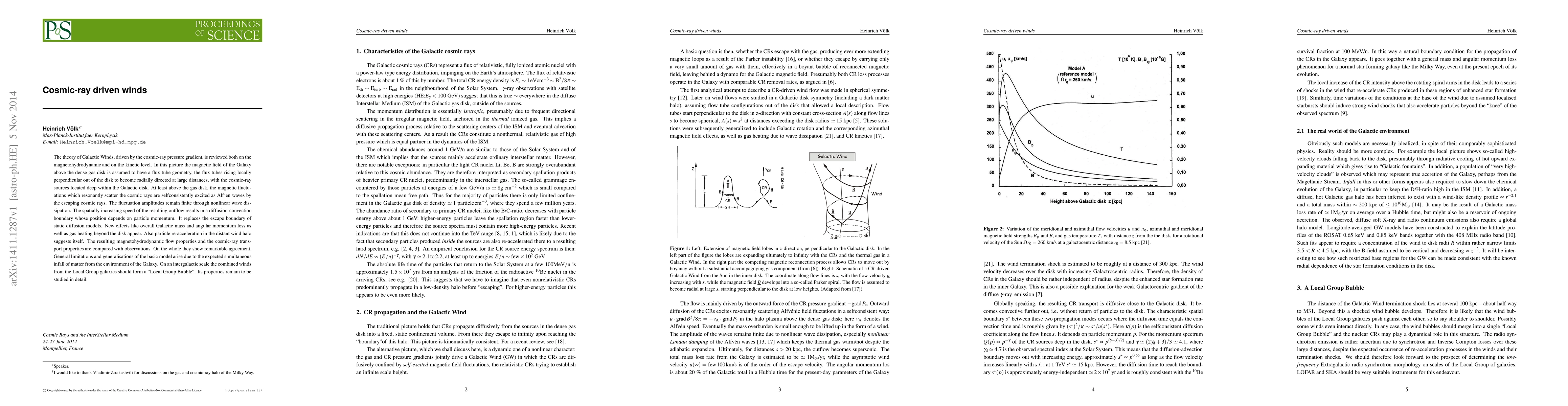 This paper reviews Galactic winds driven by cosmic-ray pressure gradients, proposing a magnetohydrodynamic model where cosmic rays escape through magnetic flux tubes, leading to mass and angular momentum loss. The model shows good observational agreement and suggests new effects like gas heating and particle re-acceleration.
