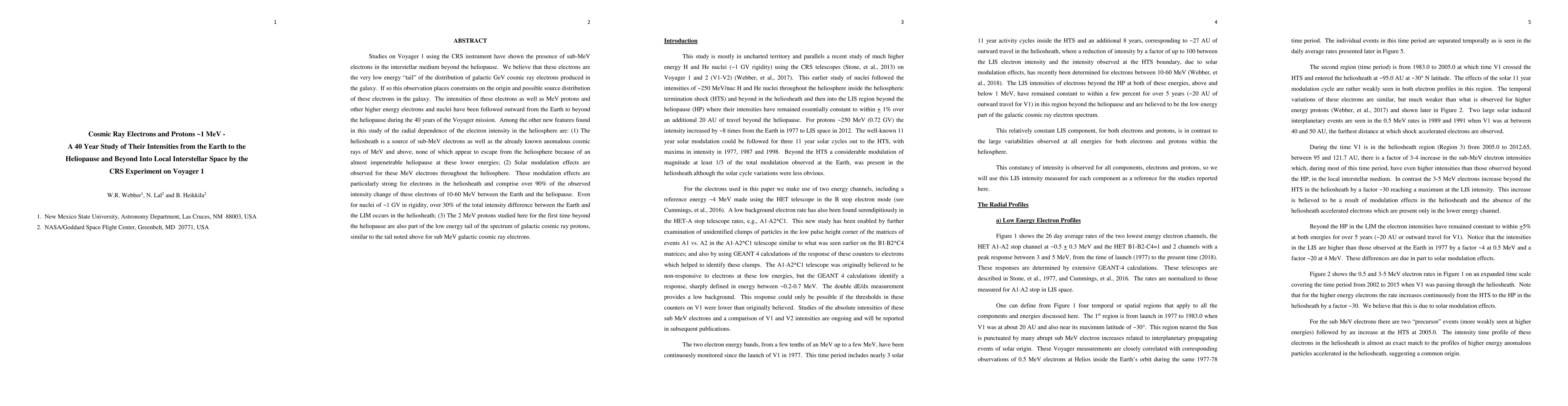 Studies on Voyager 1 using the CRS instrument have shown the presence of sub-MeV electrons in the interstellar medium beyond the heliopause. We believe that these electrons are the very low energy tail of the distribution of galactic GeV cosmic ray electrons produced in the galaxy. If so this observation places constraints on the origin and possible source distribution of these electrons in the galaxy. The intensities of these electrons as well as MeV protons and other higher energy electrons and nuclei have been followed outward from the Earth to beyond the heliopause during the 40 years of the Voyager mission. Among the other new features found in this study of the radial dependence of the electron intensity in the heliosphere are: 1. The heliosheath is a source of sub-MeV electrons as well as the already known anomalous cosmic rays of MeV and above, none of which appear to escape from the heliosphere because of an almost impenetrable heliopause at these lower energies; 2. Solar modulation effects are observed for these MeV electrons throughout the heliosphere. These modulation effects are particularly strong for electrons in the heliosheath and comprise over 90 percent of the observed intensity change of these electrons of 10-60 MeV between the Earth and the heliopause. Even for nuclei of 1 GV in rigidity, over 30 percent of the total intensity difference between the Earth and the LIM occurs in the heliosheath; 3. The 2 MeV protons studied here for the first time beyond the heliopause are also part of the low energy tail of the spectrum of galactic cosmic ray protons, similar to the tail noted above for sub MeV galactic cosmic ray electrons.