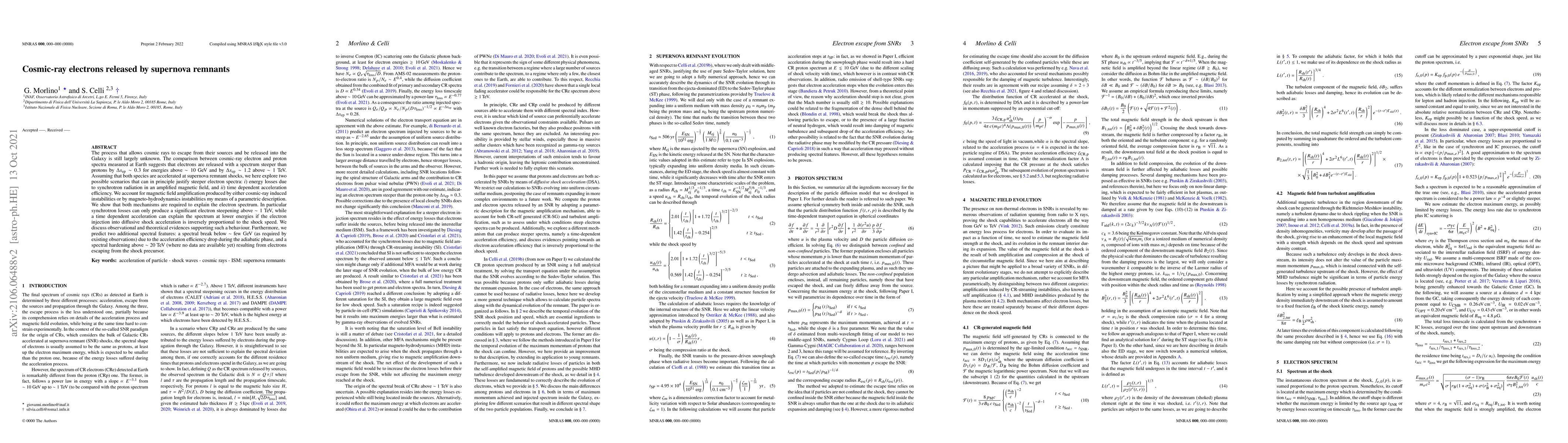 Research suggests that cosmic-ray electrons escape from supernova remnants with steeper spectra than protons, potentially due to energy losses or time-dependent acceleration mechanisms. These findings have implications for understanding the origin of high-energy particles in the galaxy.