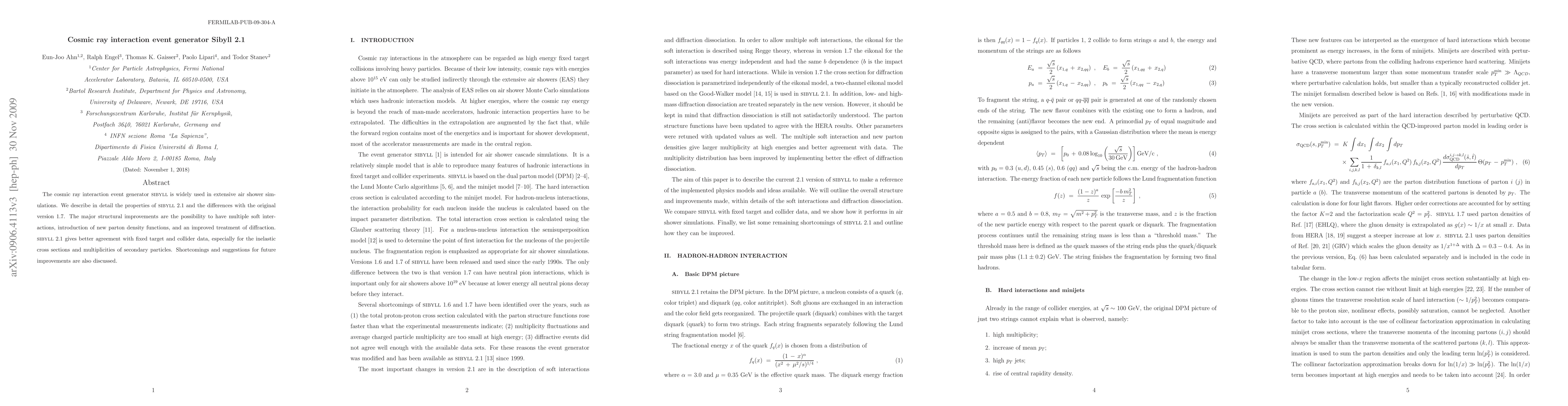 The Sibyll 2.1 cosmic ray event generator improves upon its predecessor with enhanced soft interactions, new parton density functions, and better diffraction treatment, resulting in improved agreement with fixed target and collider data.
