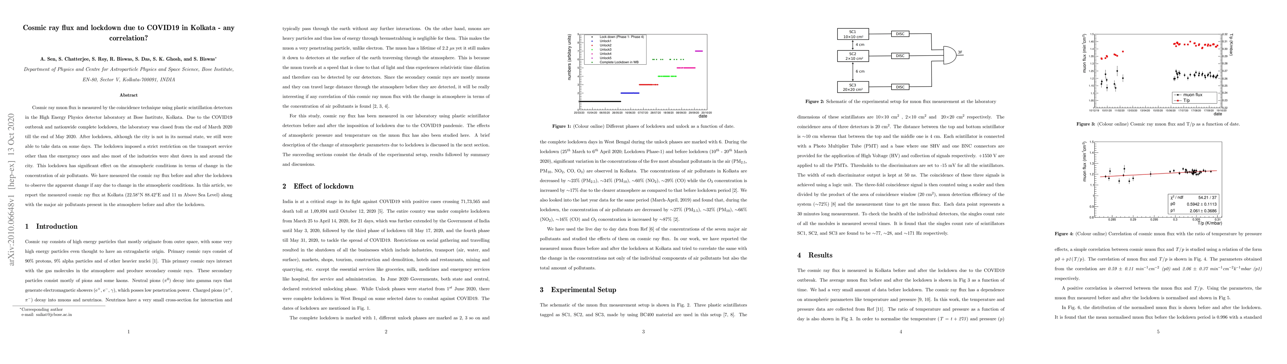 Cosmic ray muon flux is measured by the coincidence technique using plastic scintillation detectors in the High Energy Physics detector laboratory at Bose Institute, Kolkata. Due to the COVID19 outbreak and nationwide complete lockdown, the laboratory was closed from the end of March 2020 till the end of May 2020. After lockdown, although the city is not in its normal state, we still were able to take data on some days. The lockdown imposed a strict restriction on the transport service other than the emergency ones and also most of the industries were shut down in and around the city. This lockdown has significant effect on the atmospheric conditions in terms of change in the concentration of air pollutants. We have measured the cosmic ray flux before and after the lockdown to observe the apparent change if any due to change in the atmospheric conditions. In this article, we report the measured cosmic ray flux at Kolkata (22.58$^{\circ}$N 88.42$^{\circ}$E and 11~m Above Sea Level) along with the major air pollutants present in the atmosphere before and after the lockdown.