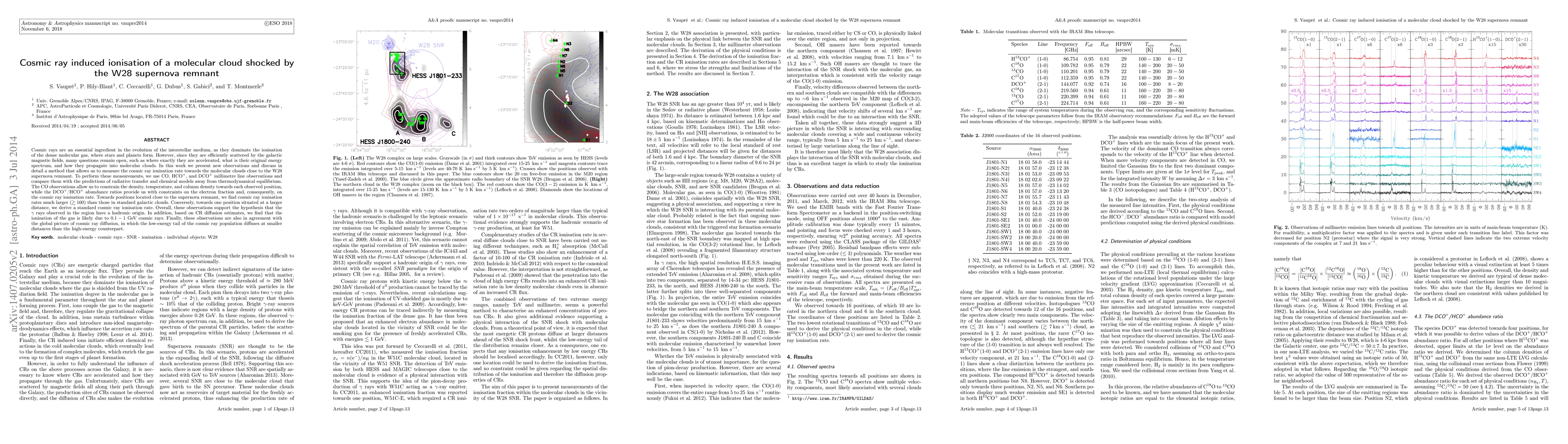 This paper investigates cosmic ray-induced ionization in molecular clouds near the W28 supernova remnant using CO, HCO$^+$, and DCO$^+$ line observations. It finds significantly higher ionization rates close to the remnant compared to standard galactic clouds, supporting a hadronic origin for observed gamma rays and suggesting that low-energy cosmic rays dominate the ionization process.