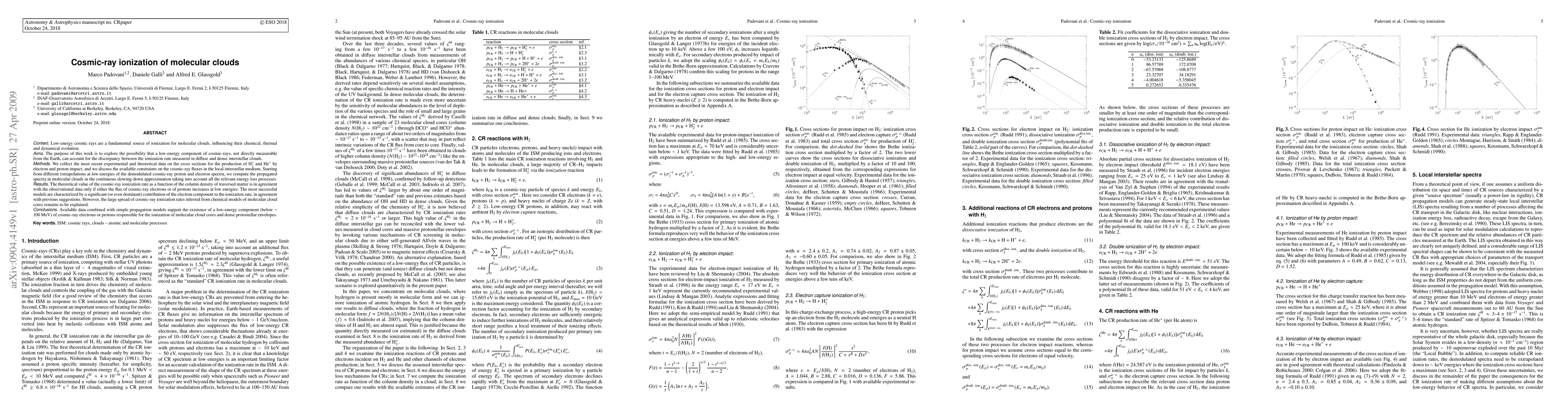 This paper investigates the role of low-energy cosmic rays in the ionization of molecular clouds, suggesting that a low-energy component could explain discrepancies in ionization rates. It finds that a significant electron component may dominate ionization, with models supporting the existence of a low-energy cosmic-ray component below 100 MeV.