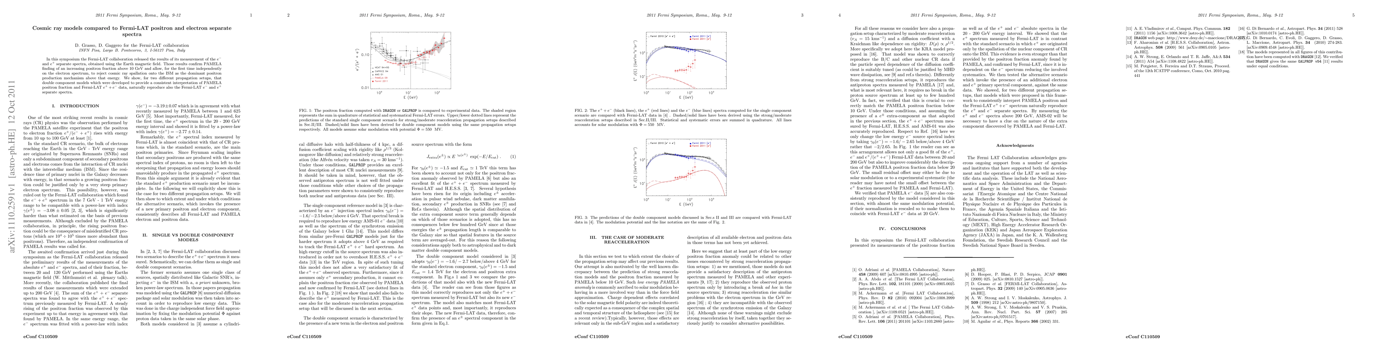 In this symposium the Fermi-LAT collaboration released the results of its measurement of the $e^-$ and $e^+$ separate spectra, obtained using the Earth magnetic field. Those results confirm PAMELA finding of an increasing positron fraction above 10 GeV and allow, for the first time independently on the electron spectrum, to reject cosmic ray spallation onto the ISM as the dominant positron production mechanism above that energy. We show, for two different propagation setups, that double component models which were developed to provide a consistent interpretation of PAMELA positron fraction and Fermi-LAT $e^+ + e^-$ data, naturally reproduce also the Fermi-LAT $e^-$ and $e^+$ separate spectra.