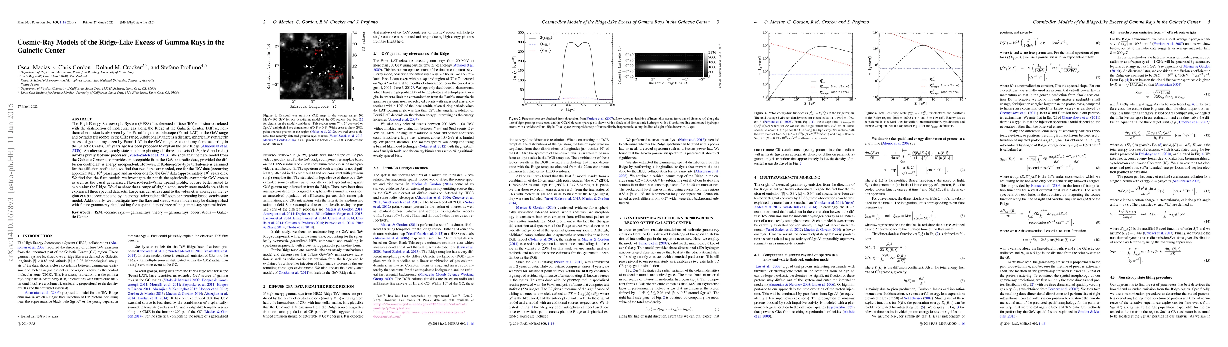 A new study investigates two possible models for gamma-ray excess in the Galactic Center: a cosmic ray flare model that fits TeV data but not GeV and radio data, and a steady-state model that explains all three datasets with an energy-independent diffusion coefficient.