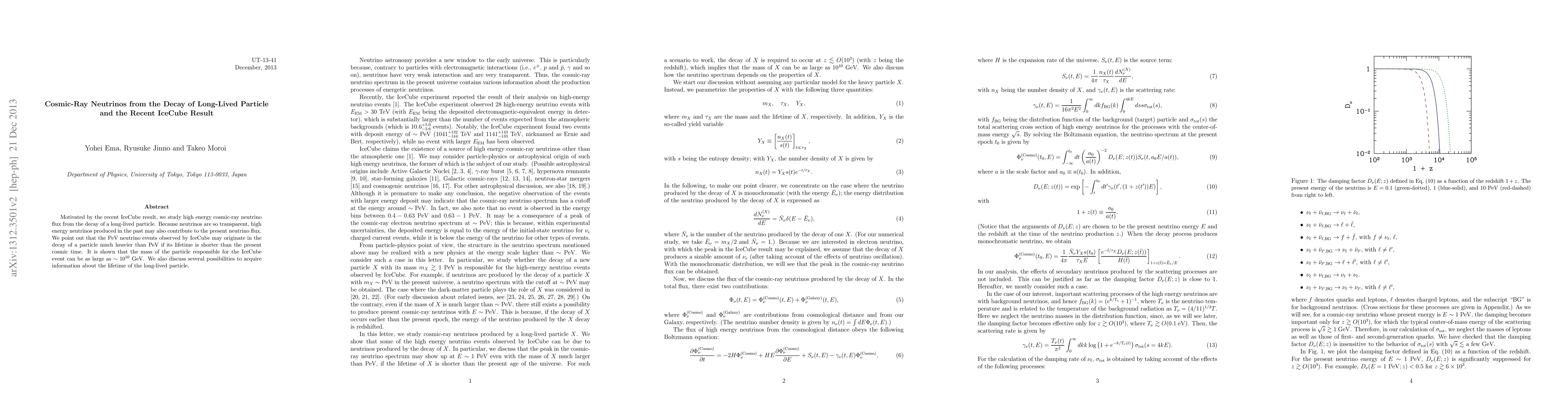 This paper explores high-energy cosmic-ray neutrino flux from the decay of a long-lived particle, suggesting that the PeV neutrino events observed by IceCube could originate from particles much heavier than PeV if their lifetimes are shorter than the current cosmic time. The study posits that the mass of such particles could be as large as $\sim 10^{10}\ {\rm GeV}$.
