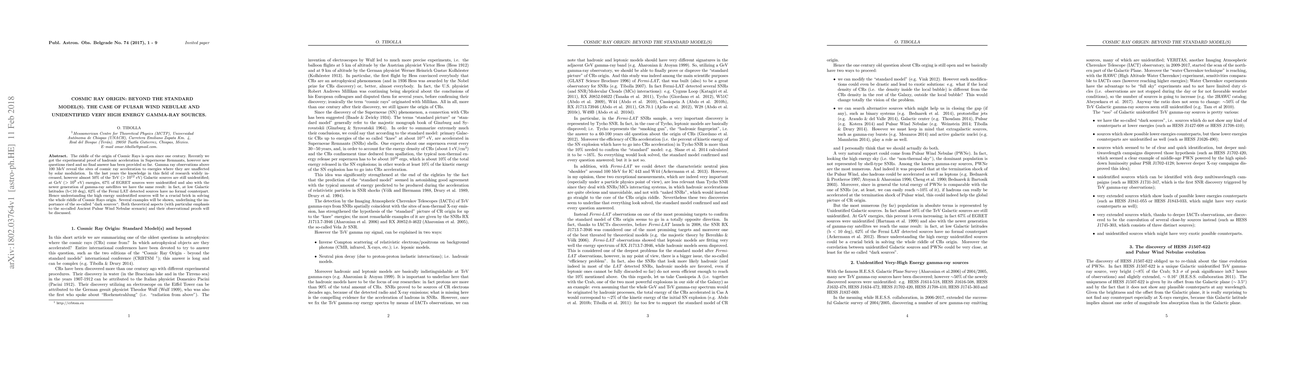 This paper investigates the origin of cosmic rays, focusing on unidentified very high-energy gamma-ray sources and pulsar wind nebulae, which may provide clues beyond the Standard Model. It highlights the importance of understanding "dark sources" to solve the century-old mystery of cosmic ray origins.