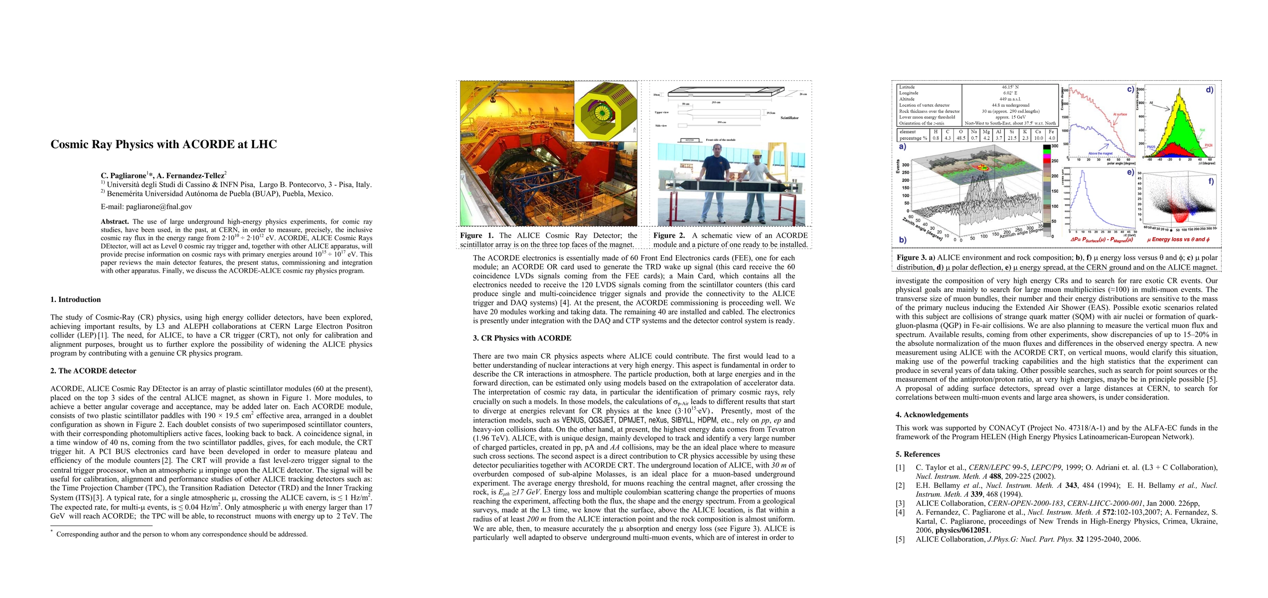 The use of large underground high-energy physics experiments, for comic ray studies, have been used, in the past, at CERN, in order to measure, precisely, the inclusive cosmic ray flux in the energy range from 2x10^10 - 2x10^12 eV. ACORDE, ALICE Cosmic Rays DEtector, will act as Level 0 cosmic ray trigger and, together with other ALICE apparatus, will provide precise information on cosmic rays with primary energies around 10^15 - 10^17 eV. This paper reviews the main detector features, the present status, commissioning and integration with other apparatus. Finally, we discuss the ACORDE-ALICE cosmic ray physics program.
