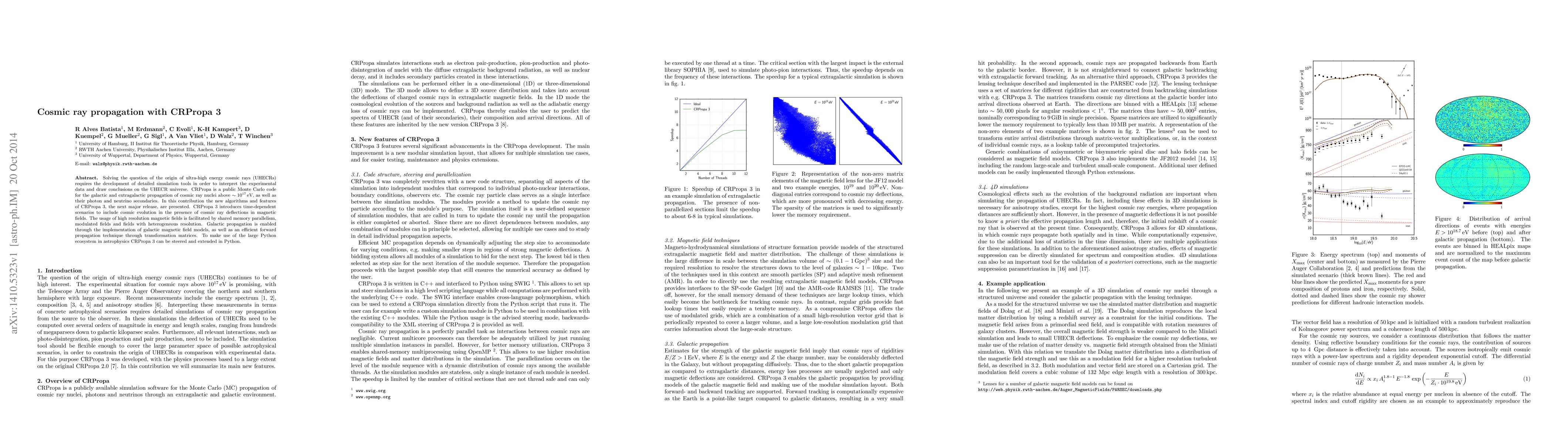 Solving the question of the origin of ultra-high energy cosmic rays (UHECRs) requires the development of detailed simulation tools in order to interpret the experimental data and draw conclusions on the UHECR universe. CRPropa is a public Monte Carlo code for the galactic and extragalactic propagation of cosmic ray nuclei above $\sim 10^{17}$ eV, as well as their photon and neutrino secondaries. In this contribution the new algorithms and features of CRPropa 3, the next major release, are presented. CRPropa 3 introduces time-dependent scenarios to include cosmic evolution in the presence of cosmic ray deflections in magnetic fields. The usage of high resolution magnetic fields is facilitated by shared memory parallelism, modulated fields and fields with heterogeneous resolution. Galactic propagation is enabled through the implementation of galactic magnetic field models, as well as an efficient forward propagation technique through transformation matrices. To make use of the large Python ecosystem in astrophysics CRPropa 3 can be steered and extended in Python.