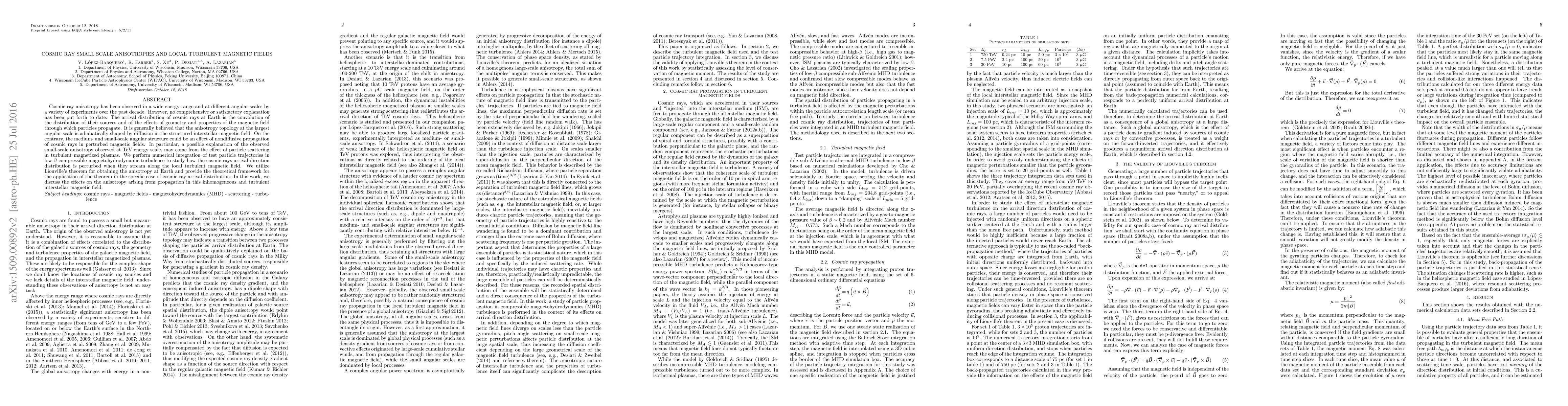 This paper investigates the small-scale anisotropies in cosmic ray arrival directions, attributing them to the effects of turbulent magnetic fields in the interstellar medium. It uses numerical simulations of magnetohydrodynamic turbulence to model cosmic ray propagation and applies Liouville's theorem to explain the resulting anisotropy observed at Earth.