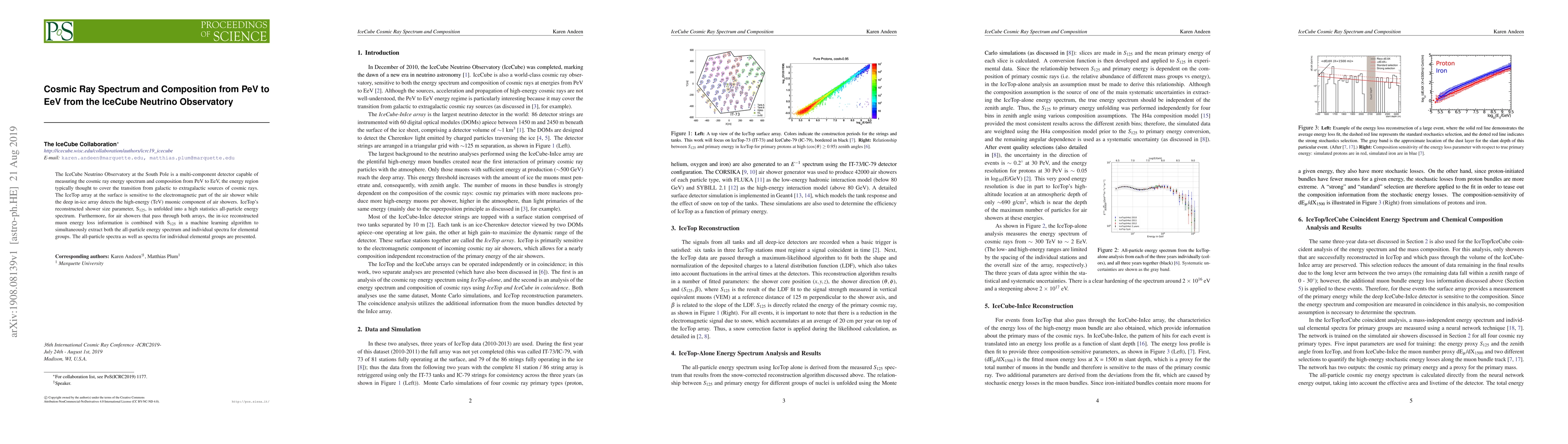 The IceCube Neutrino Observatory measures the cosmic ray spectrum and composition from PeV to EeV, revealing the transition from galactic to extragalactic sources. The study combines data from IceTop and deep in-ice arrays to extract detailed energy spectra for both all particles and elemental groups.