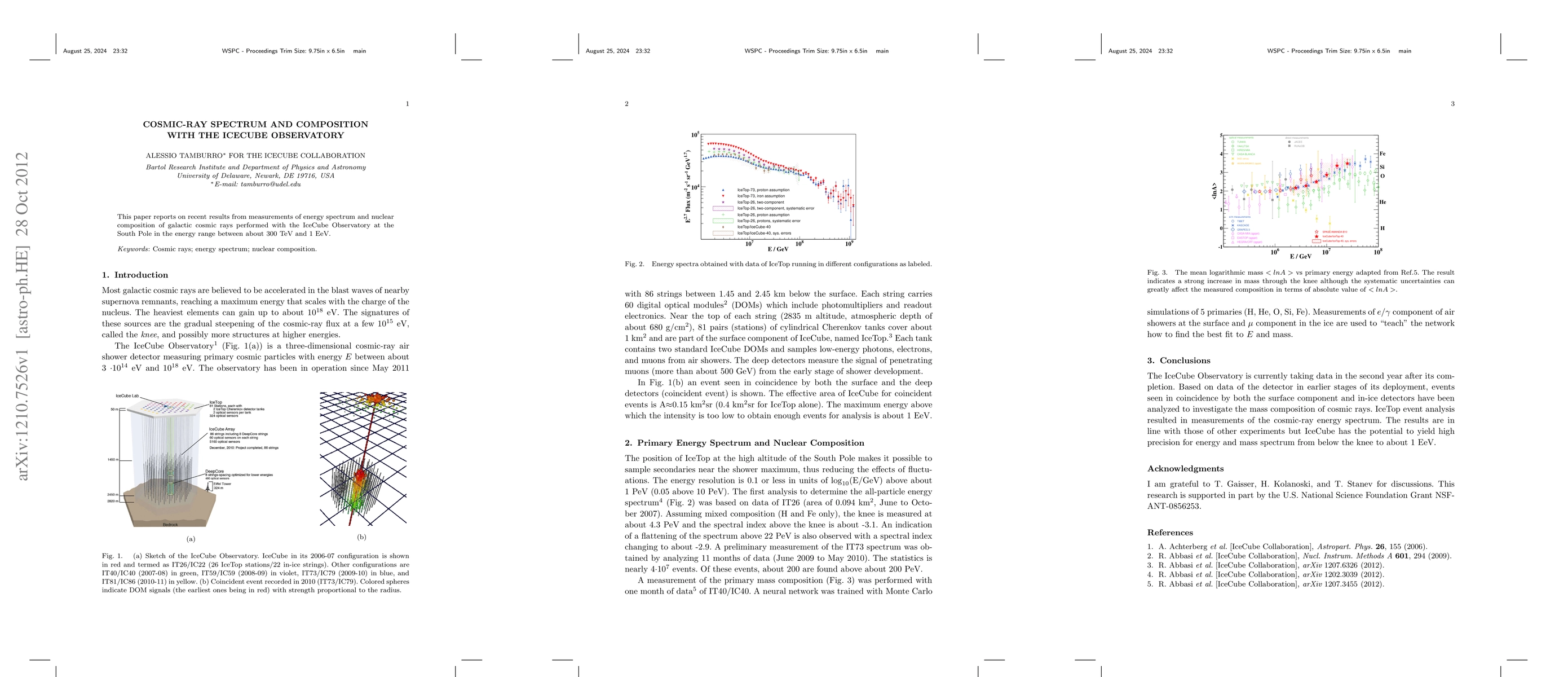This paper presents findings from the IceCube Observatory on the energy spectrum and nuclear composition of galactic cosmic rays in the energy range from 300 TeV to 1 EeV, offering insights into the high-energy cosmic ray phenomena.