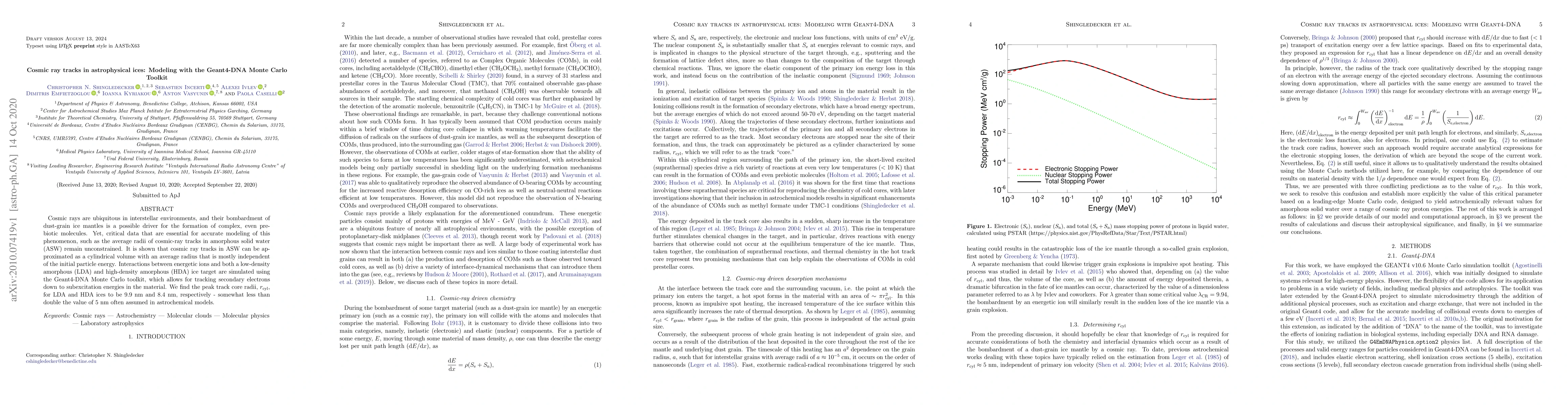 This study uses the Geant4-DNA Monte Carlo toolkit to model cosmic ray interactions with astrophysical ices, revealing that the average radii of cosmic ray tracks in amorphous solid water are 9.9 nm for low-density amorphous ice and 8.4 nm for high-density amorphous ice, challenging the commonly assumed 5 nm value in astrochemical models.