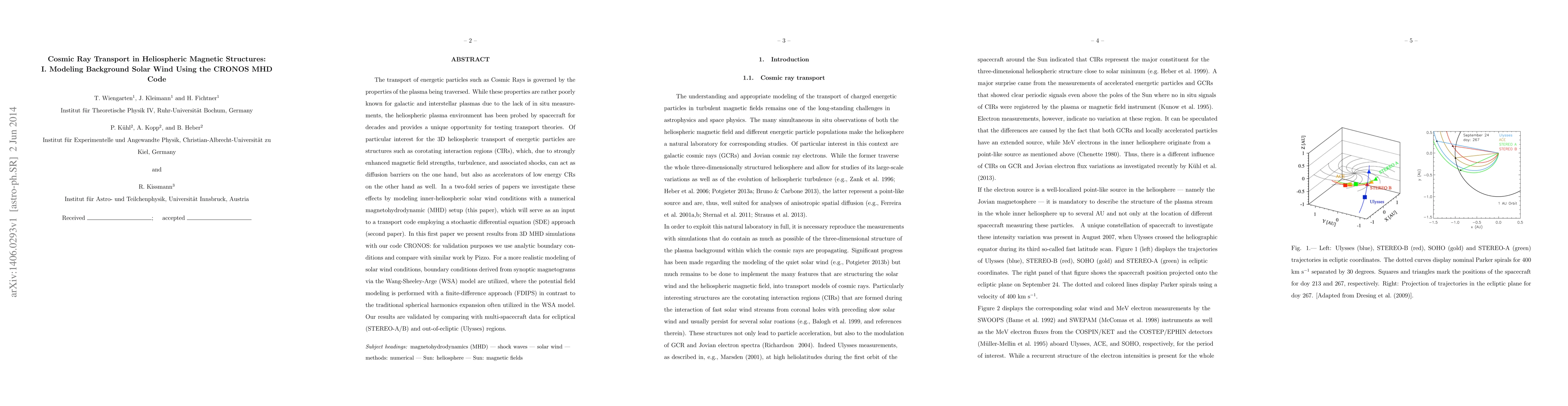 This paper models the inner-heliospheric solar wind using the CRONOS MHD code to simulate cosmic ray transport, focusing on structures like corotating interaction regions. The study validates the model with analytic and observational data, employing a finite-difference approach for potential field modeling.