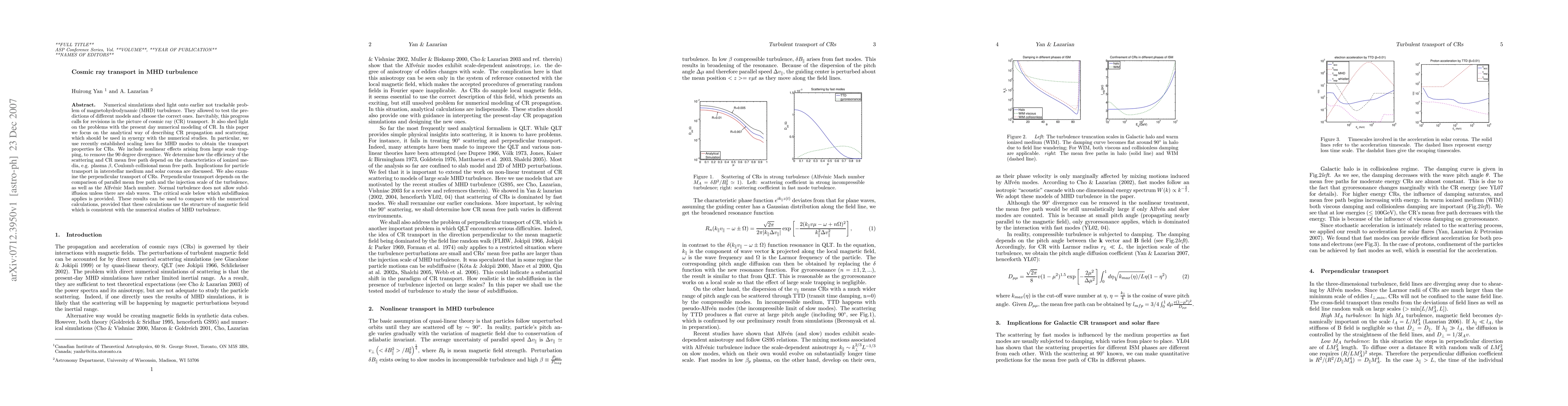 This paper investigates cosmic ray (CR) transport in magnetohydrodynamic (MHD) turbulence using analytical methods, focusing on the scattering and propagation of CRs. It employs scaling laws for MHD modes to derive transport properties, addressing nonlinear effects and the efficiency of scattering, and discusses implications for interstellar medium and solar corona particle transport.