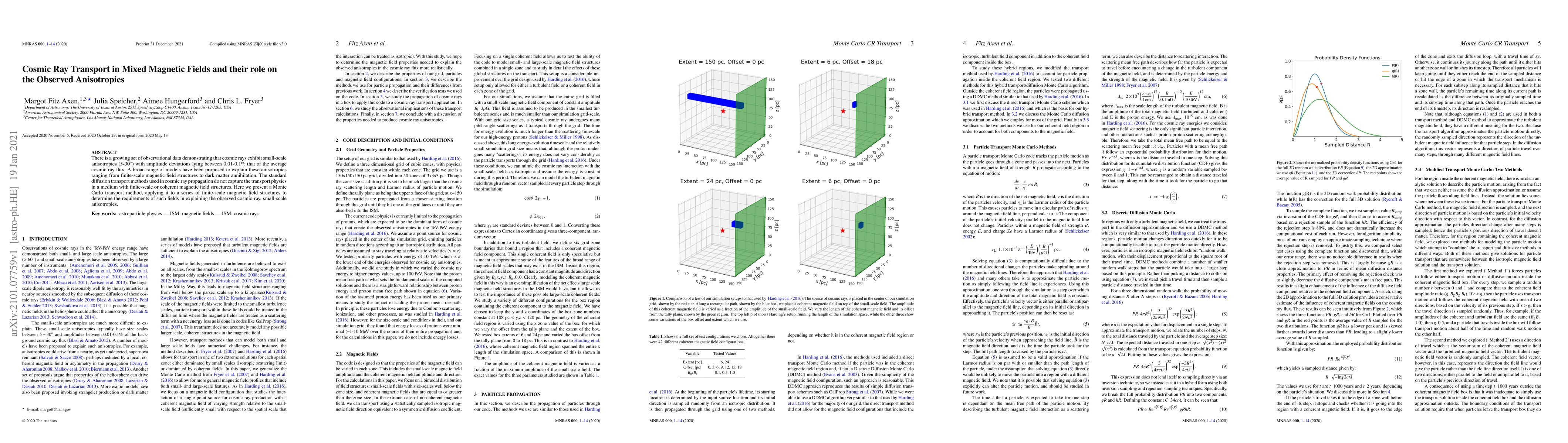 This paper proposes a Monte Carlo transport method to study cosmic ray propagation in mixed magnetic fields, aiming to explain the observed small-scale anisotropies in cosmic ray flux. The results suggest specific requirements for magnetic field structures to account for these deviations.