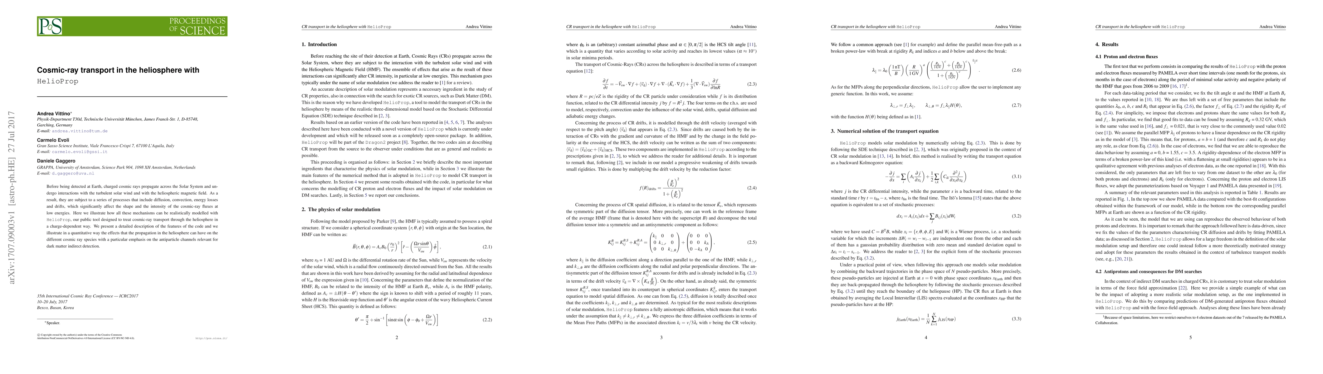 Before being detected at Earth, charged cosmic rays propagate across the Solar System and undergo interactions with the turbulent solar wind and with the heliospheric magnetic field. As a result, they are subject to a series of processes that include diffusion, convection, energy losses and drifts, which significantly affect the shape and the intensity of the cosmic-ray fluxes at low energies. Here we illustrate how all these mechanisms can be realistically modelled with HelioProp, our public tool designed to treat cosmic-ray transport through the heliosphere in a charge-dependent way. We present a detailed description of the features of the code and we illustrate in a quantitative way the effects that the propagation in the heliosphere can have on the different cosmic-ray species with a particular emphasis on the antiparticle channels relevant for dark matter indirect detection.