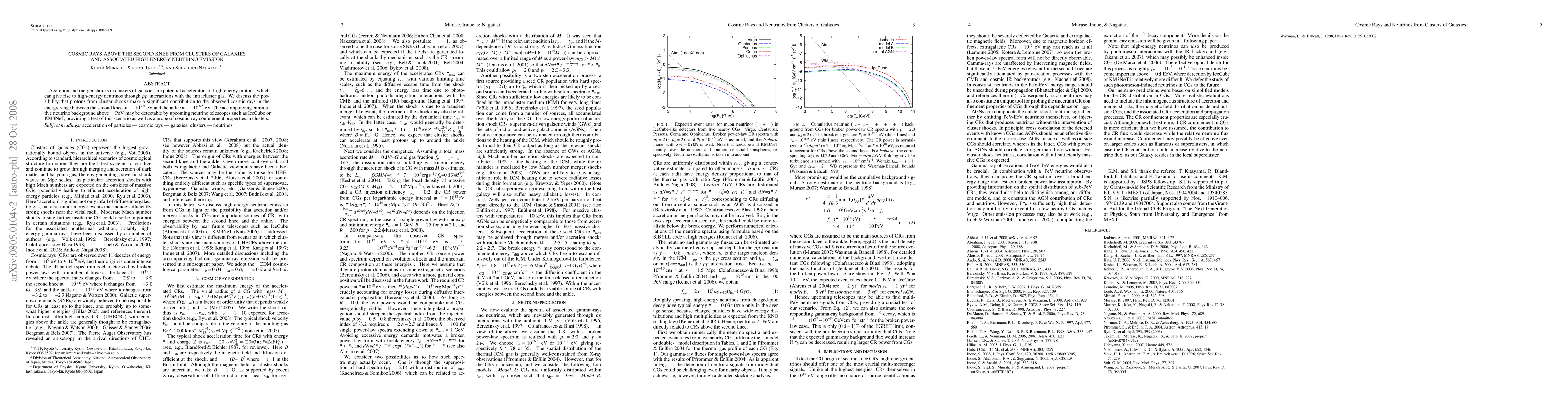 Accretion and merger shocks in clusters of galaxies are potential accelerators of high-energy protons, which can give rise to high-energy neutrinos through pp interactions with the intracluster gas. We discuss the possibility that protons from cluster shocks make a significant contribution to the observed cosmic rays in the energy range between the second knee around 10^17.5 eV and the ankle around 10^18.5 eV. The accompanying cumulative neutrino background above PeV may be detectable by upcoming neutrino telescopes such as IceCube or KM3NeT, providing a test of this scenario as well as a probe of cosmic-ray confinement properties in clusters.